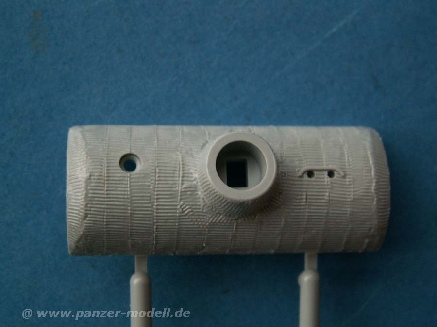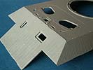 Das Zimmerit ist auf allen Bereichen des Panzers aufgetragen - dieses ist sehr fein und an der Oberwanne stellenweise etwas sehr gleichmäßig. An Turm, Unterwanne und besonders an der Kanonenblende ist die Gestaltung hervorragend!