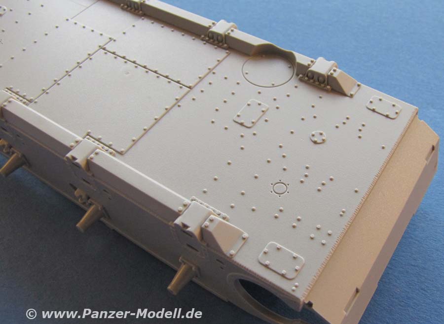 Wie von Dragon gewohnt bedient man sich auch hier an vielen Teilen der "Slide Mould" Technologie und die Detailierung und Ausformung der Teile ist sehr gut. Gerade an den Lauf- und Stützrollen wird dies wieder besonders deutlich, wo die Herstellerbeschriftungen fein und so eben erhaben aufgeprägt sind, dass es eine helle Freude ist.