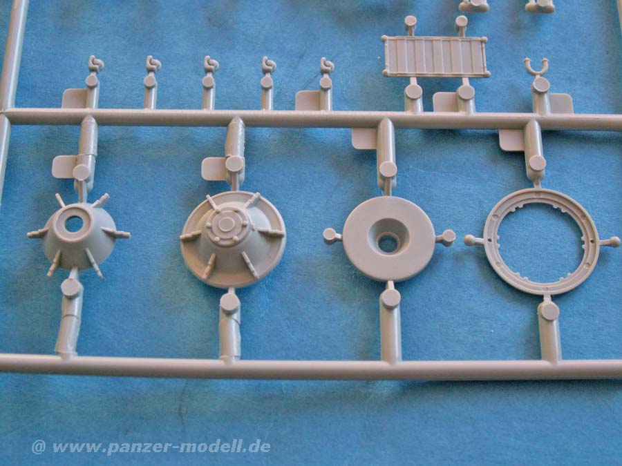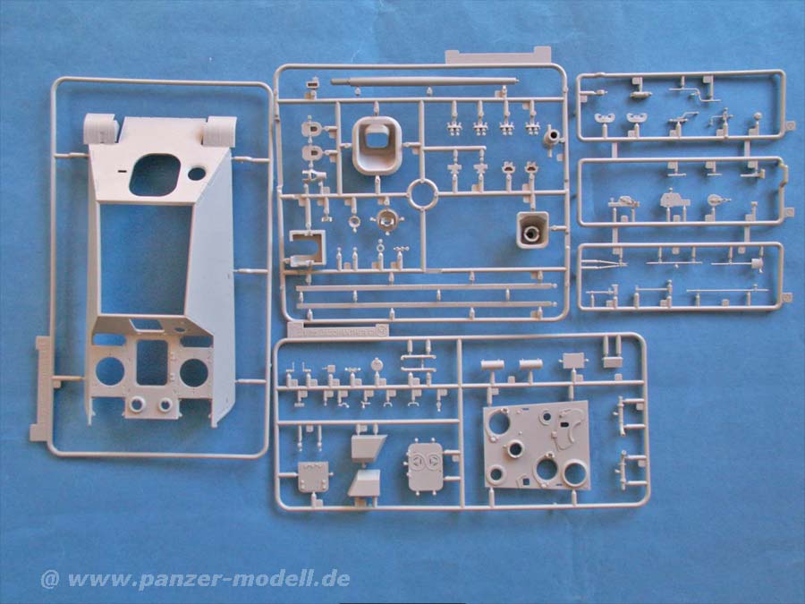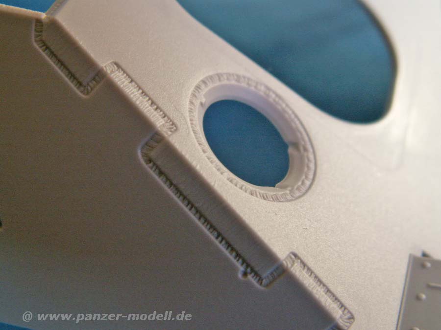 Die Teile sind allererste Sahne - die Wanne stimmt in ihren Winkeln und Abmessungen exakt nach Vorbildplänen, Schweißnäht sind hervorragend dargestellt, egal ob die dicken, groben von der Plattenverzahnung oder kleine, feine wie z.B. an der Nahtstelle des Bug-MG's. Auch die schnittkanten der Panzerplatten sind strukturiert.