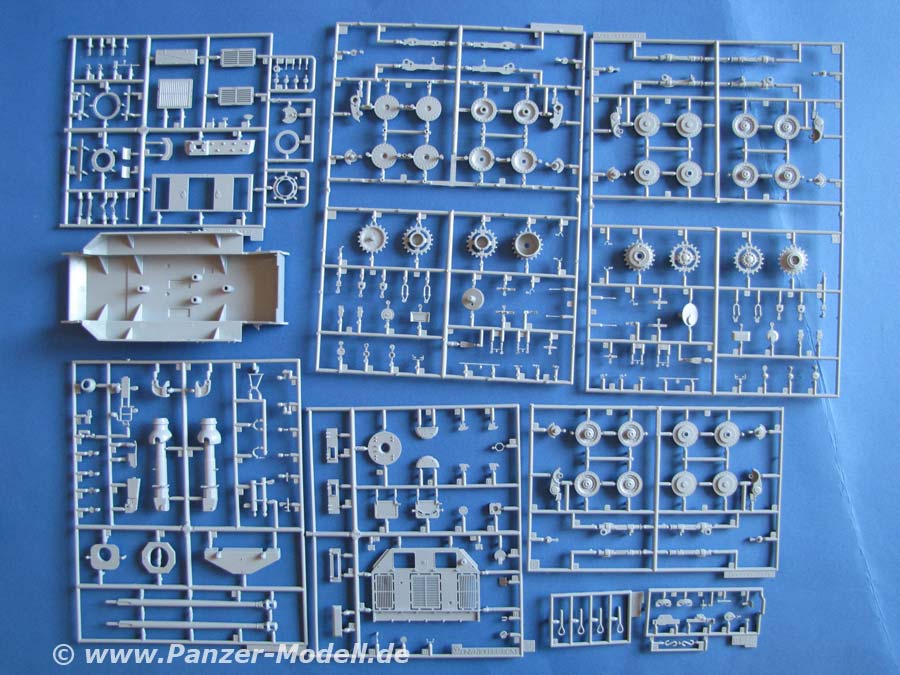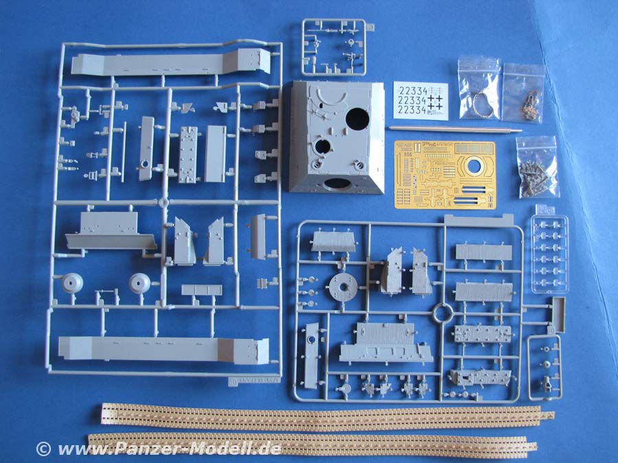 Grundsätzlich knnt man das Gros der Teile von den vorigen Bausätzen der Elefant, stellenweise sehen diese noch besser aus - die Ur-Teile des Elefant ohne Zimmerit liegen auch noch bei.