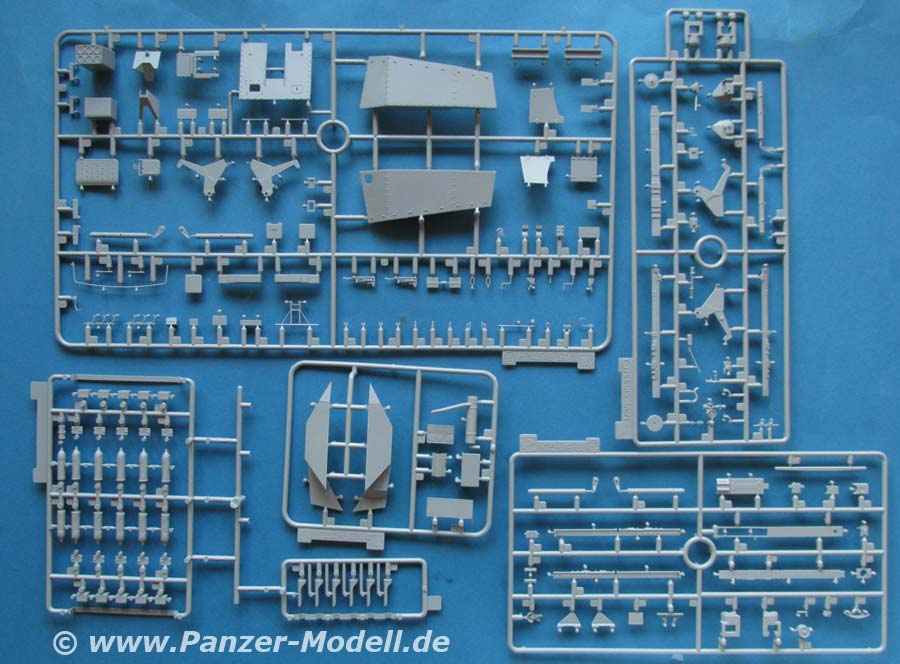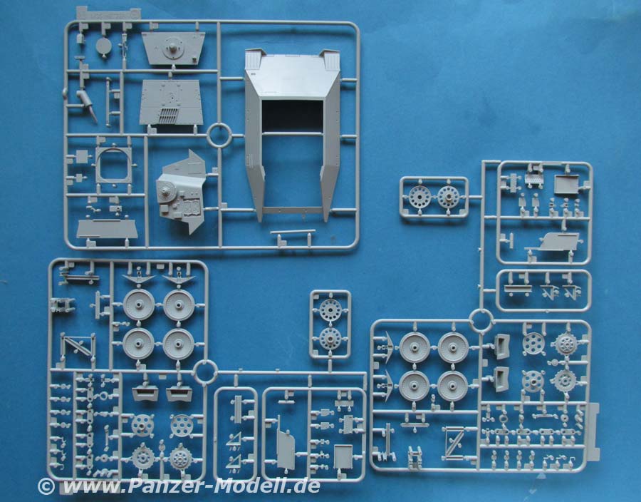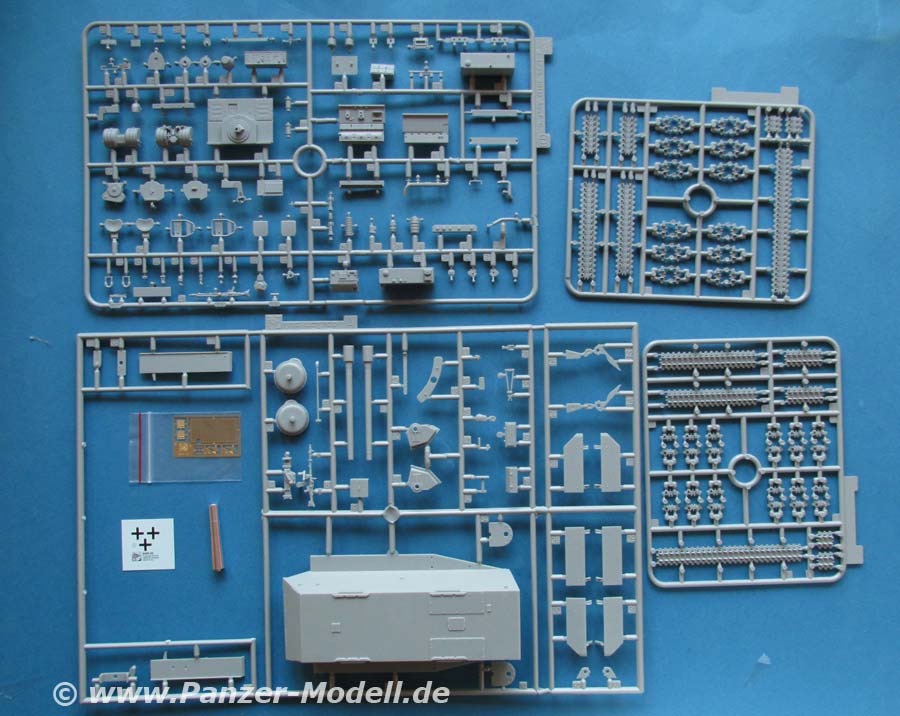 Insgesamt sind die Teile wieder recht dragontypisch in guter Qualität sauber gespritzt und mit feinen Details versehen. Die enthaltenen Spritzlinge basieren in groÃen Teilen, wie schon gesagt, auf vorherigen bereits auf dem Markt erhältlichen Bausätzen des Hetzers und des 15cm sIG plus einigen sehr speziellen Teilen nur für diese Version.