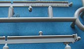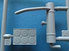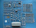 Hier finden wir 12 mehr oder weniger groߟe graue Spritzlinge,ein Alu-Rohr, eine PE Platine und ein Decalbogen.