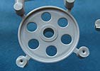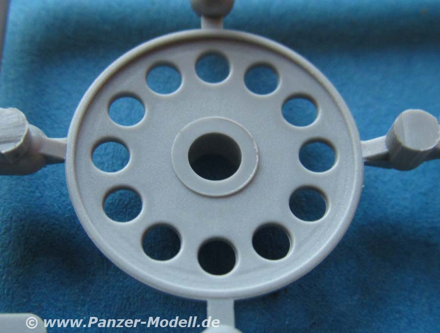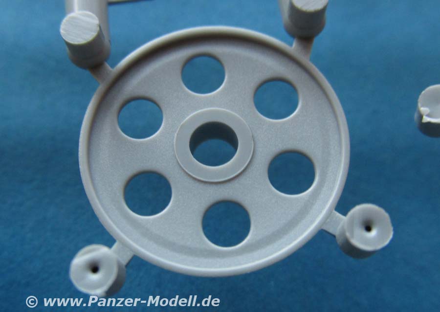 Die Laufrollen sind ansprechend und sauber gespritzt - für die Leiträder liegen die 6- und 12 Loch Versionen bei.