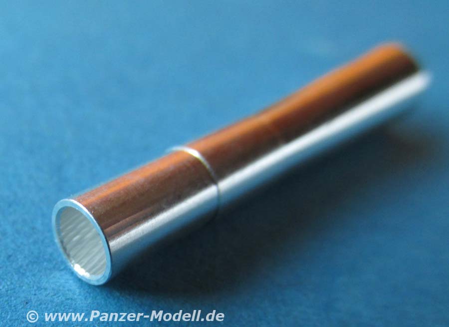 Das sIG besteht im wesentlichen aus der Lafette, der Laufschiene und dem Rohr mit Verschluss. Interessanterweise hat Dragon hier für das dicke 15cm Rohr eines aus Aluminium beigelegt - in der offenen Mündung kann man gut die feinen Felder und Züge erkennen.