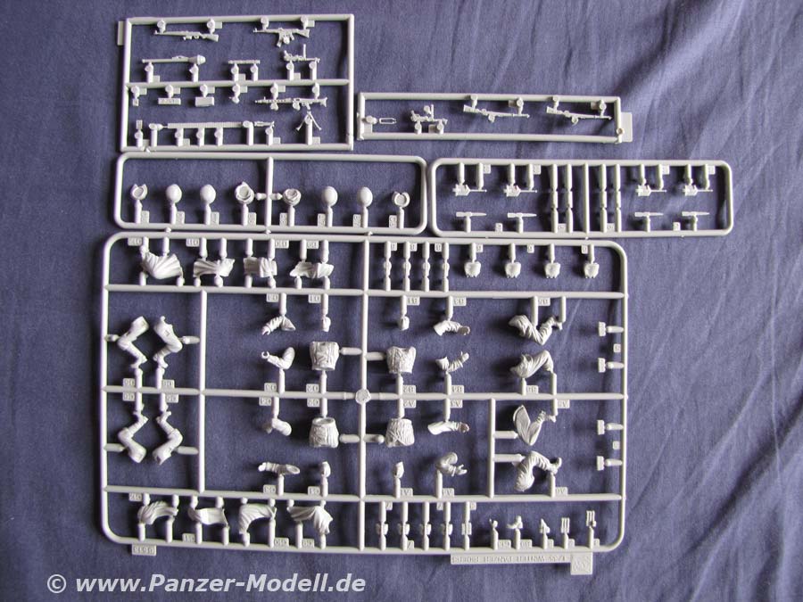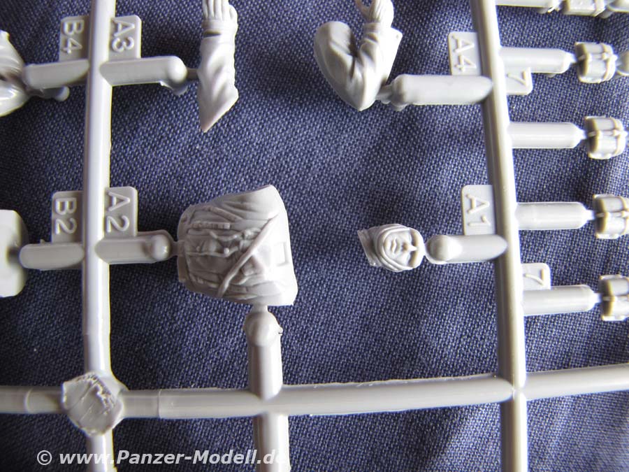 Im Bausatz enthalten sind über 70 Teile zur Darstellung von 4 Figuren, die von der Pose auf dem Motordeck eines Panzer IV in lauernder Position sitzen.