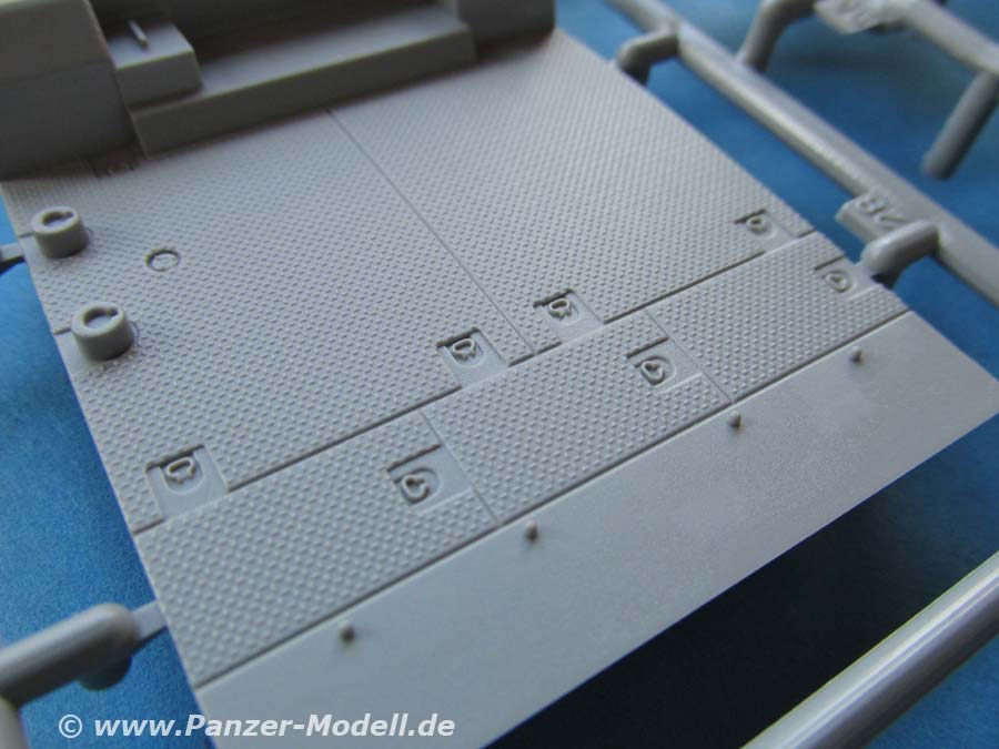 Der Aufbau gliedert sich in mehrere Teile und bietet mehrere schöne Details. Gerade die Bodenplatte im Kampfraum ist sehr schön detailiiert mit der Noppenstruktur und Handgriffen.