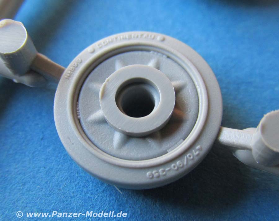 Die Unterwanne ist prinzipiell die bereits bekannte Wanne mit Laufwerk des Hummel Bausatzes. Diese macht einen guten Eindruck und die Laufrollen weisen wieder die tollen Herstelleraufdrucke auf der Gummierung auf.