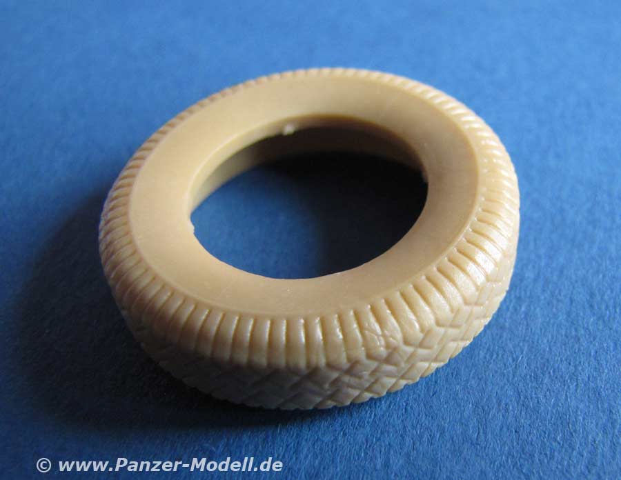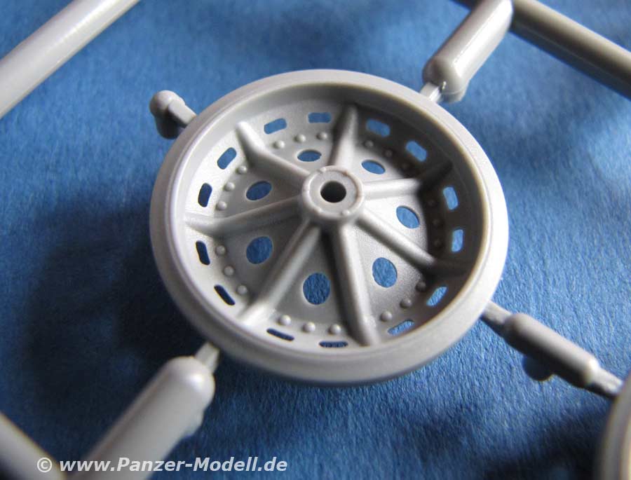 Die Vorderräder bestehen aus Vinylreifen mit gut dargestelltem Profil und Plastikfelgen. Auch die Laufrollen des Kettenlaufwerks wissen zu gefallen mit ihren feinen Details.