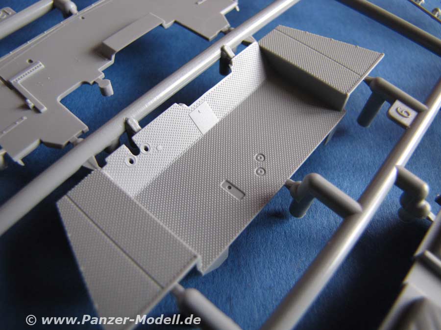 Der Großteil der Teile, insbesondere für das Chassis und Laufwerk sind bereits vom Vorgänger, das Sd.Kfz.7/1 bekannt und die Details sind wirklich exzellent. Sogar die PE Teile weisen in ihrer Gitterstruktur eine Dreidimensionalität auf!