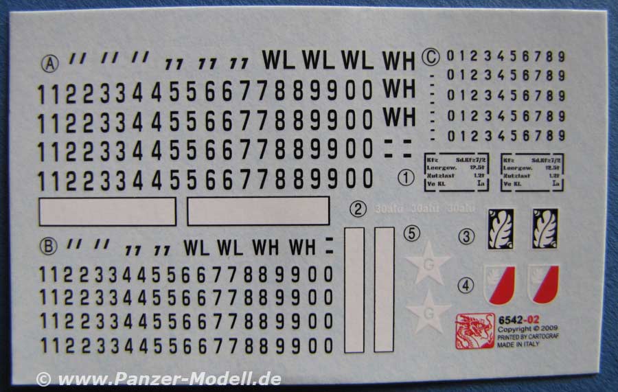 Für Markierungen ist diesmal ein ganz eigenes, loses Blatt beigelegt, denn ganze 6 Bemalungs/Markierungsvarianten werden vorgschlagen, die auch mit dem Decalbogen realisierbar sind: