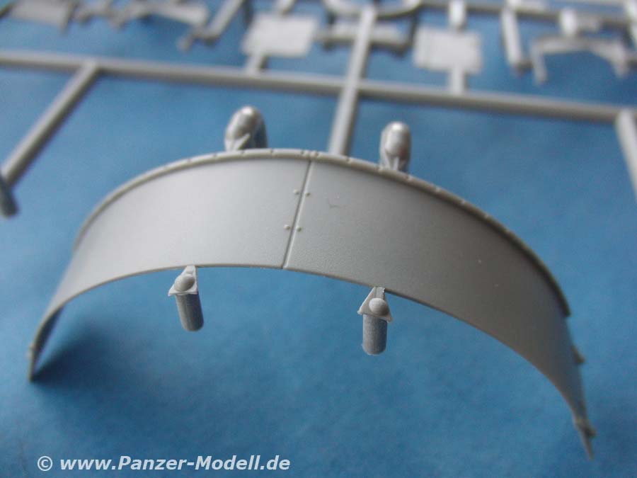 Die Turmschürzen bestehen aus Plastikteilen in Razor Edge Technologie. Die Seitenschürzen hingegen sind mit der Halterung aus Plastik mit PE Teilen und die Schürzenelemente aus dickerem PE Blech. Dies macht einen exzellenten Eindruck und lässt sich sehr realistisch beschädigen.