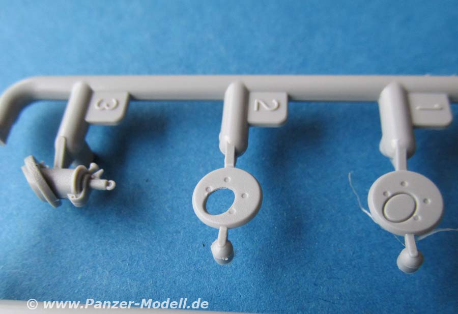 Die Laufrollen sind ebenfalls ganz ausgezeichnet mit feinen und klaren Details, wie z.B. den Radmuttern. Für das Laufwerk, bzw. Vorgelege und Dämpfer stehen zwei verschiedenen Optionen zur Verfügung - Dragon schweigt sich leider wieder darüber aus wa es mit diesen auf sich hat.