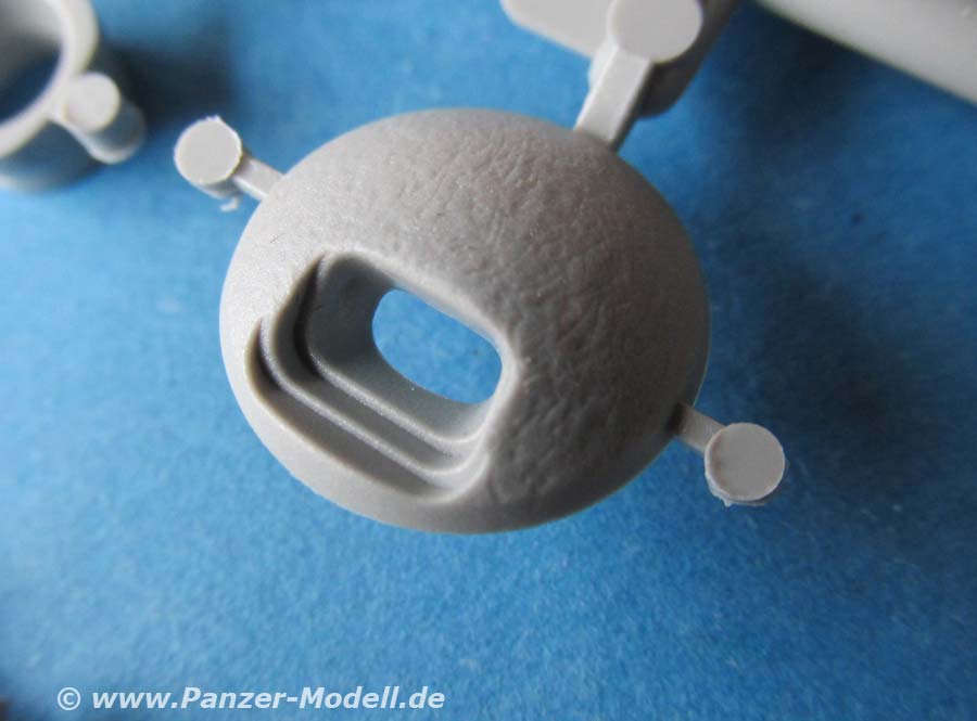 Geschützkragen und kanonenrohr machen ebenfalls einen guten Eindruck. Das Rohr ist zwar mehrteilig, aber nicht in den sonst üblichen Halbteilen, sondern nur in der Länge unterteilt mit separater Mündungsbremse - das sieht recht vielversprechend aus.