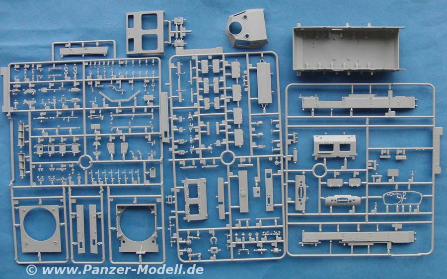 Aber auch die Kanonenblende mit der Hauptwaffe und den 2 koaxialen MGs sieht recht gut aus, zumal die Kanone einteilig gemacht wurde und auch im Inneren des Turms einiges an Material dargestellt wird.