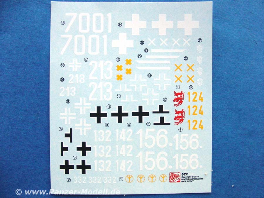 An Markierungen stehen mit dem Decalbogen und der Anleitung Möglichkeiten für ganze 7 verschiedene Versionen zur Verfügung.