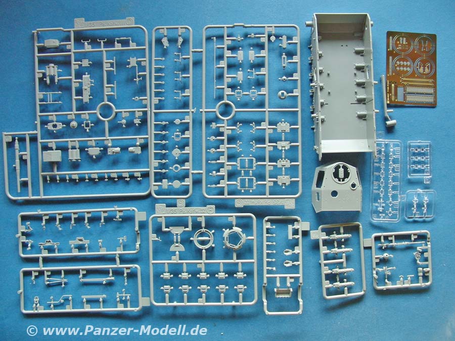 Dieser Bausatz schlägt in die gleiche Kerbe der bisherigen Panzer III Bausätze von Dragon - viele der Bauteile kennt man bereits, zumal diese späte Ausf.H der frühen Ausf.J sehr ähnlich ist.