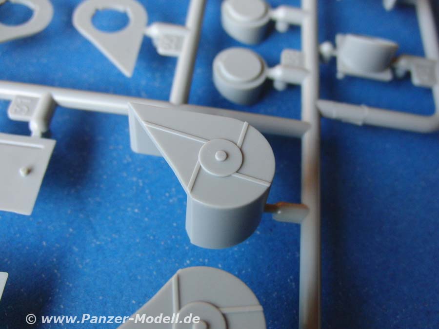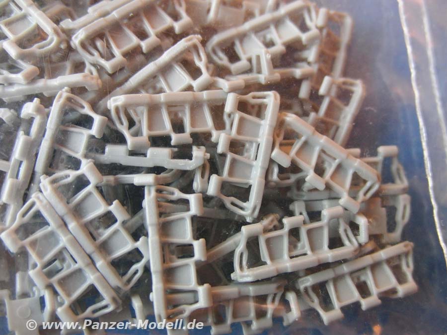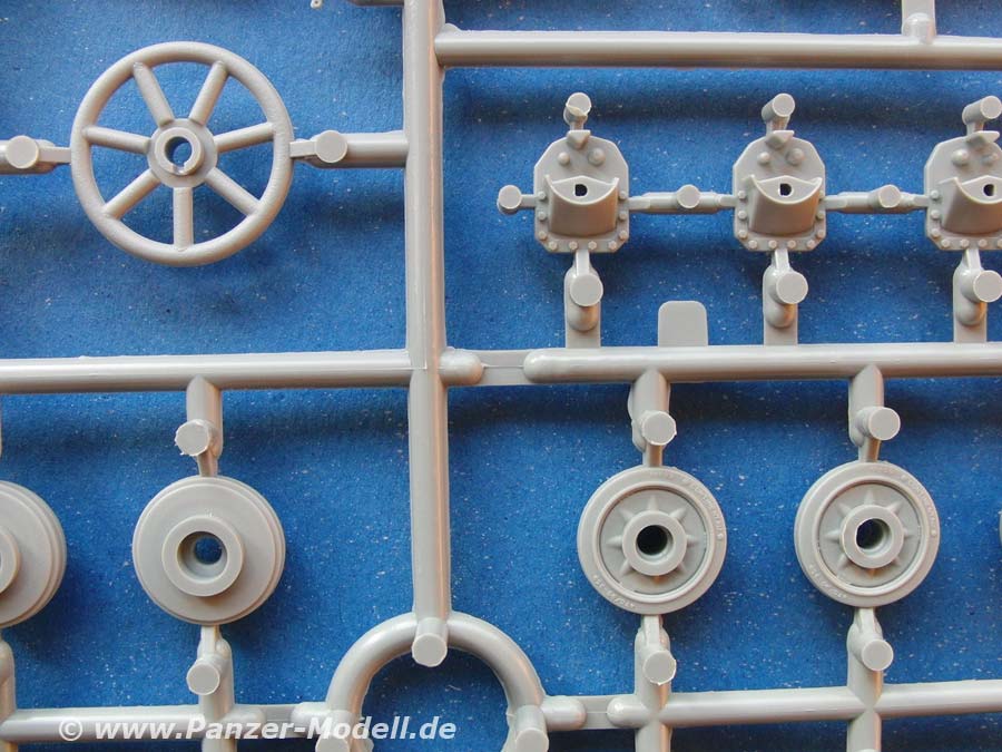 Die Wanne mit dem Panzer IV Laufwerk ist exzellent dargestellt mit sauberen und hochfeinen Nietenreihen. Das Laufwerk mit den Laufrollen und Ketten kennt man bereits von den bereits bekannten Panzer IV Bausätzen und ist sehr schön detailliert.