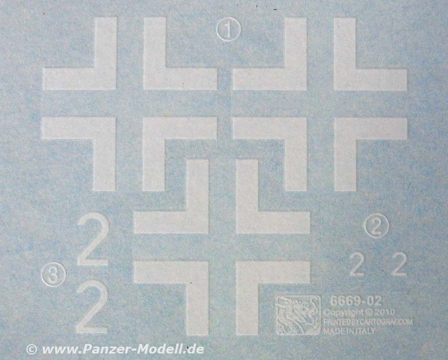 An Markierungen stehen lediglich große weiße Balkenkreuze, zwei kleine und zwei mittlere "2" zur Verfügung, so wie es am Originalprototypen gewesen ist: