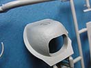 Die Wanne ist zwar eine späte Wanne und besitzt die Flammvernichter Auspuffrohre, leider sind die 4 Halterungen der Stützrollen bereits mit angegossen, sodass man nicht die ganz späte J Wanne mit 3 Stützrollen daraus bauen kann.