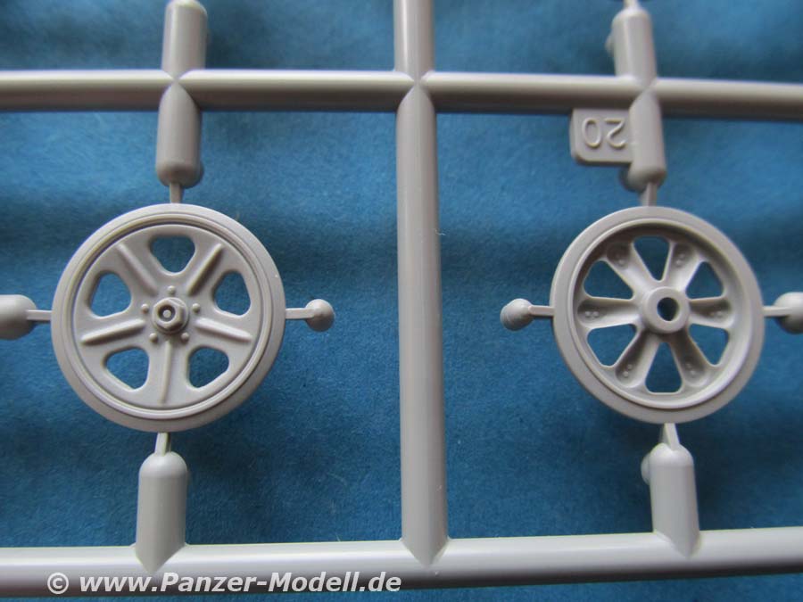 Die Räder des Anhängers setzen sich ebenfalls aus zwei Halbteilen zusammen und weist ebenso schöne Details, wie etwa der Profilgestaltung, aus.