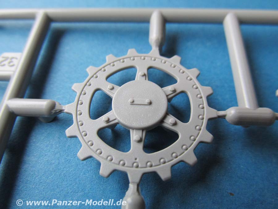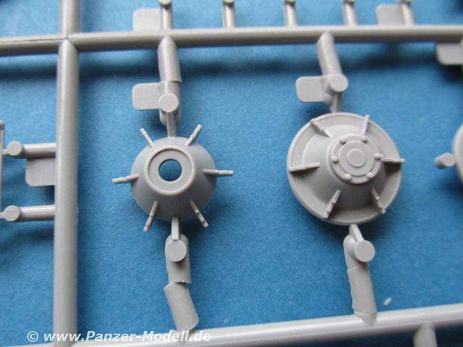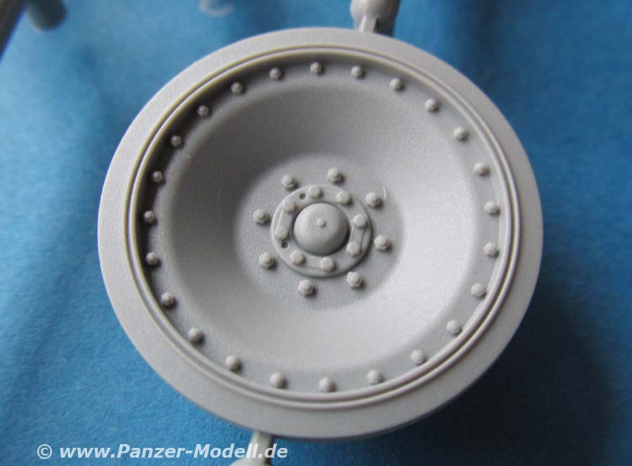 Für das Laufwerk liegen nur die gummierten Laufrollen und nicht die Stahllaufrollen bei, wie man es vielleicht bei einer Serienausführung des Panther F erwarten würde. Die Qualität der Laufrollen ist sehr gut mit wunderschönen Bolzen.