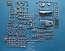 Im Bausatz finden wir 13 mehr oder weniger große graue Spritzlinge, einen transparenten Spritzling, zwei Beutel Magic Tracks(!), eine PE Platine und ein Decalbogen.