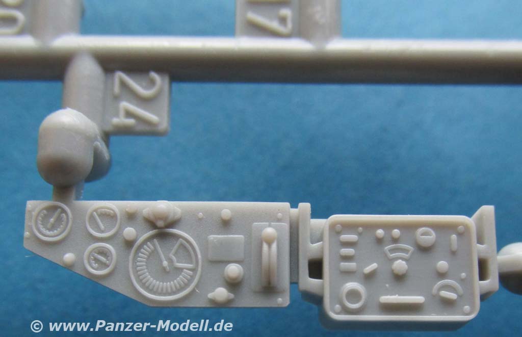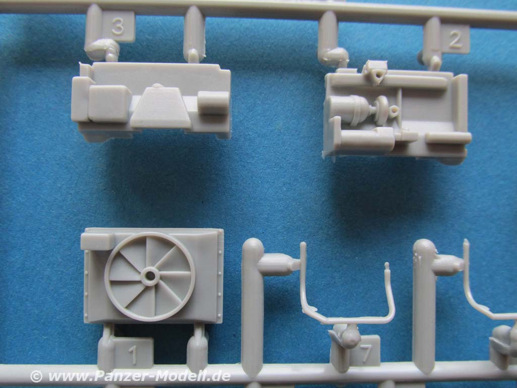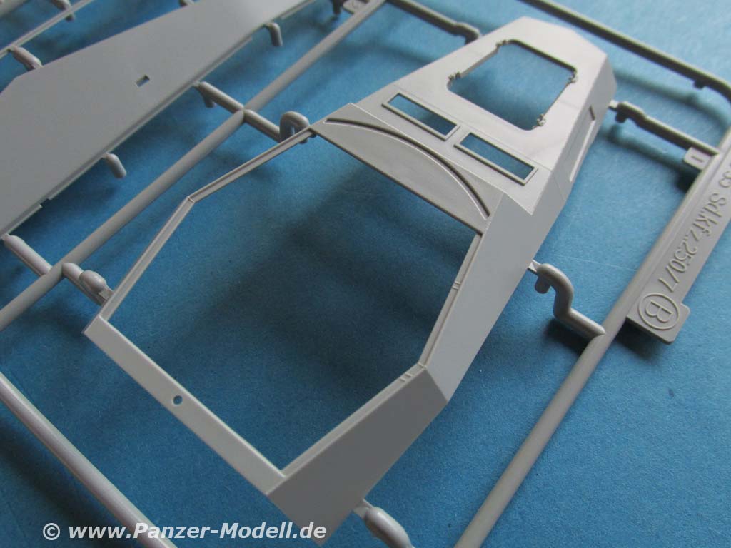 Das Schutzschild am vorderen Aufbau liegt nur in einer Plastikversion bei - hier wäre ein Optionsteil als PE Teil nicht verkehrt gewesen.