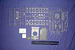 Drei Spritzlinge, dazu Ober- und Unterwanne, 2 Vinylketten, Auspuffabdeckbleche aus vorgebogenem PE Material und etwas Metallkabel für die Abschleppseile. Die Teile sind für diesen Maßstab wirklich gut gelungen, die Räder sind alle einzeln aufsteckbar und recht fein detailiert. Auch die kette weiss in diesem maßstab sogar als Vinylkette gut zu gefallen. Nonplusultra sind allerdings die beiden Auspuffschilde, die schon gebrauchsfertig als PE Teile beiliegen und einen exzellenten Eindruck machen. Die Oberwanne ist nahezu komplette gleich mit Werkzeug angegossen.