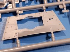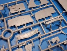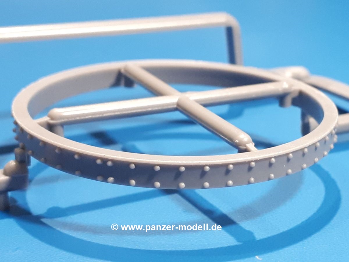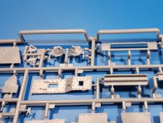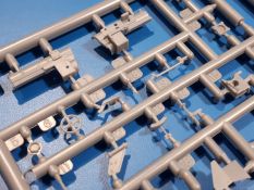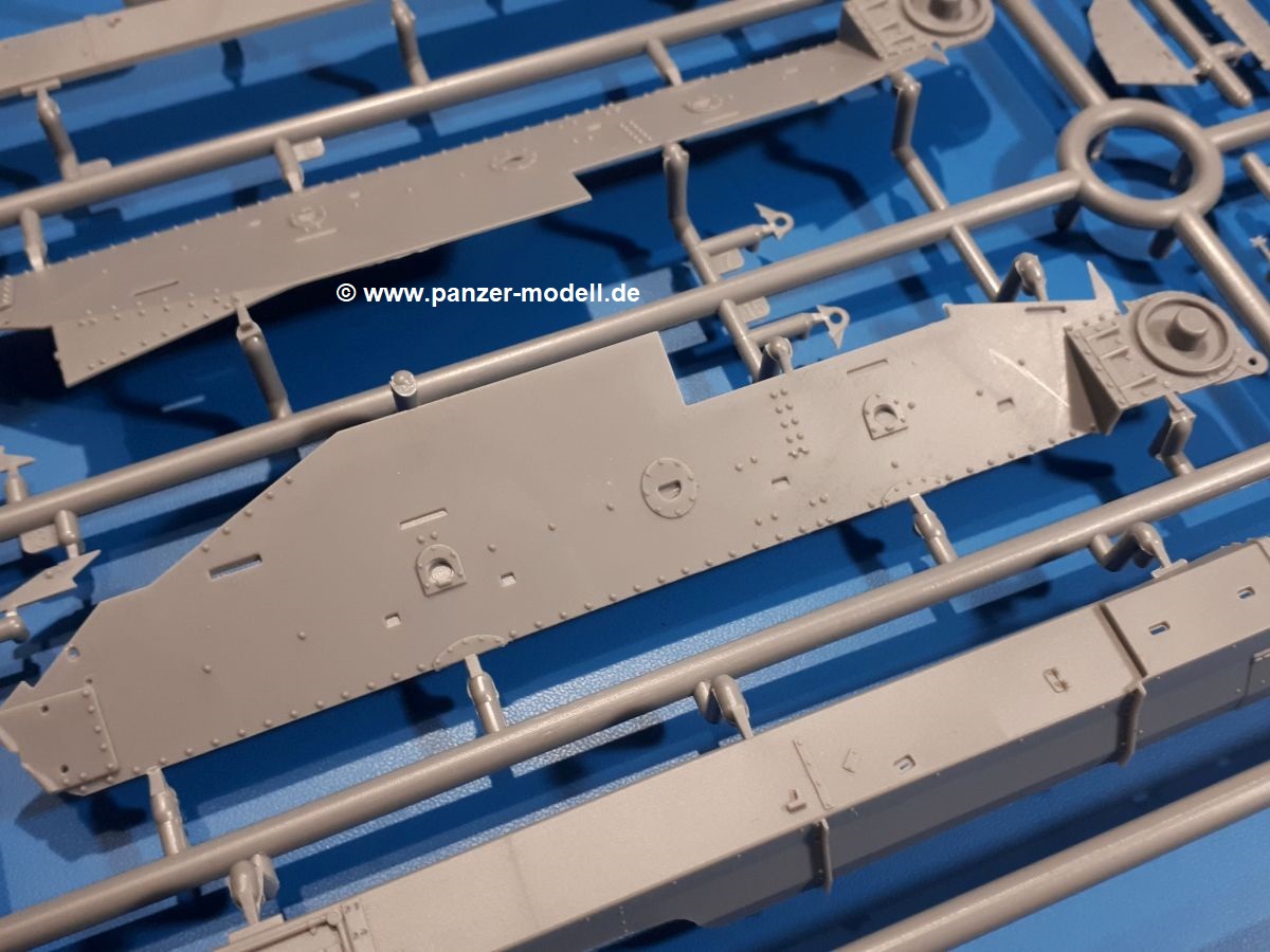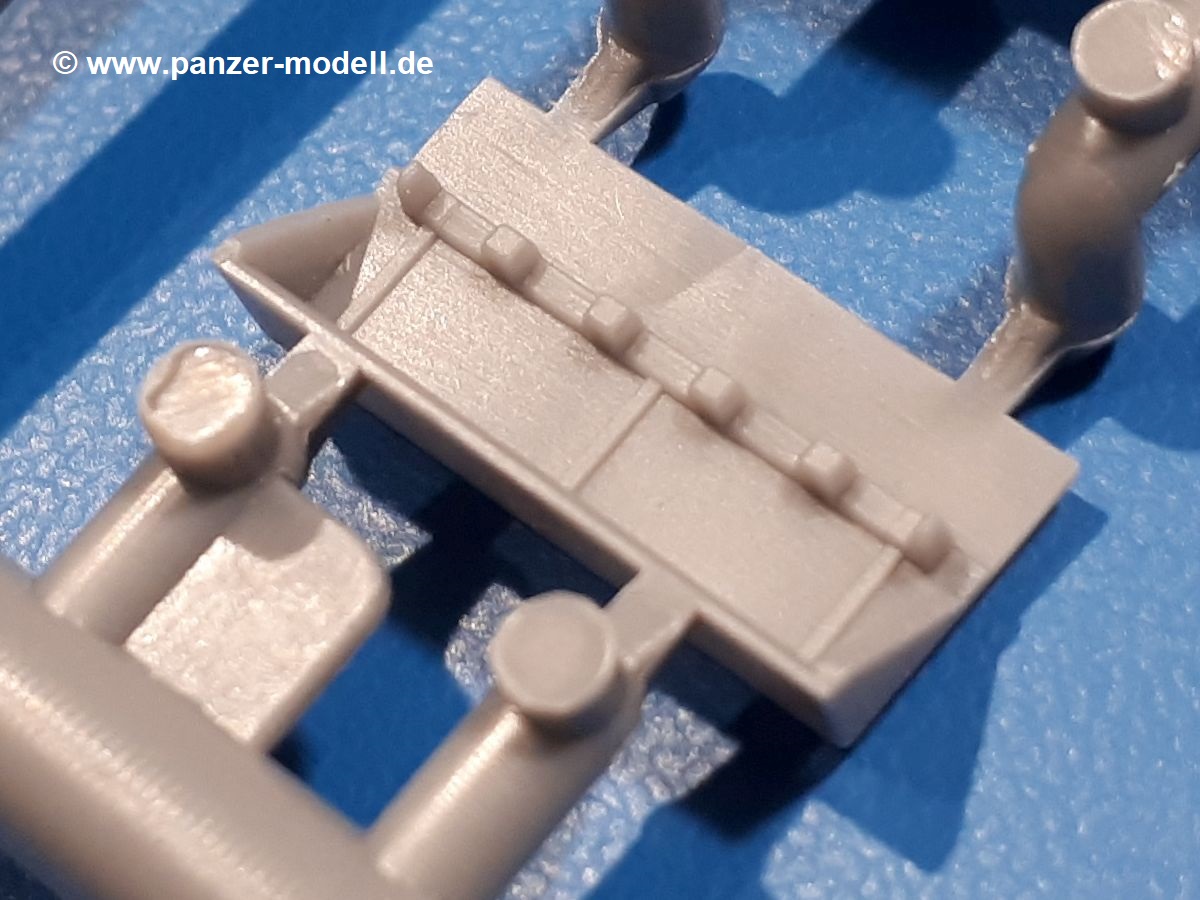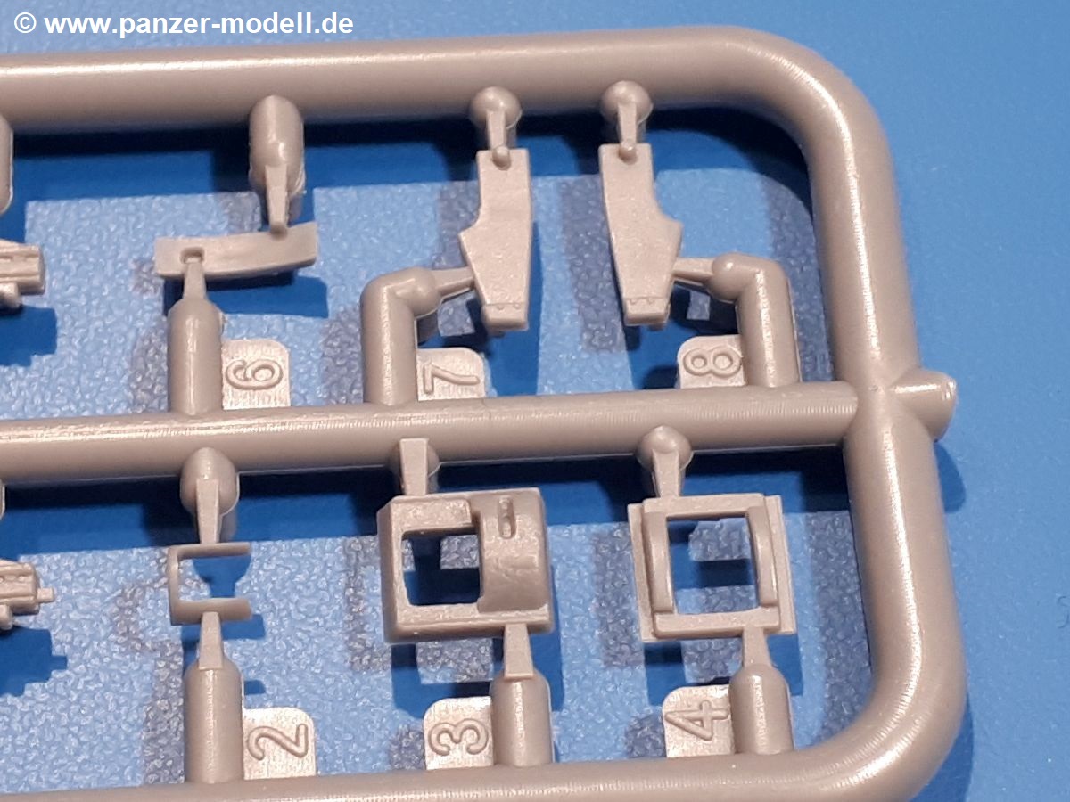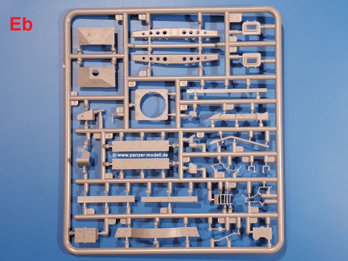 Das Original: In den 1930-er Jahren parallel zum Cruiser Mk. I (A9) entwickelt, war der A10 in der Rolle eines schweren Infanteriepanzers vorgesehen, die er aber nicht erfüllen konnte und deswegen als schwerer Kreuzerpanzer eingesetzt wurde. Es gab ihn in 3 Versionen - Mk. II (40mm 2-Pfünder Kanone, 1 koaxiales Vickers-MG), Mk. IIA (40mm 2-Pfünder Kanone, 1 koaxiales Besa-MG, 1 Besa Bug-MG) und Mk.IIA CS (94mm Howitzer, 1 koaxiales Besa-MG, 1 Besa Bug-MG). Mit seinem 150 PS Motor erreichte er grad mal 26 km/h auf der Strasse, 13 km/h im Gelände. Insgesamt wurden 175 Mk. II produziert. Er wurde Anfang des 2. Weltkrieges in Frankreich, später auch in Nordafrika und Griechenland eingesetzt. Er lieferte aber keine zufriedenstellenden Ergebnisse und wurde später durch den Cruiser Tank Mk. III (A13) ersetzt. Der Bausatz: Schon länger in der Vorankündigung kommen nun endlich die ersten Gecko Model Bausätze auch auf dem deutschen Markt an.Im Karton finden wir einen Klarsicht- und 35 hellgraue Spritzlinge. Dazu kommen Draht, Schnur, 1 Ätzteilplatine, ein Decalbogen und eine 28-seitige Bauanleitung.Die Verarbeitungsqualität ist hervorragend. Details wie z.B. Schrauben, Nieten, Schweißnähte und Bedienhebel fallen einem ebenso ins Auge wie die Schlieren freien, kristallklaren Scheinwerfergläser. Die Angüsse sind klein und gut zugänglich. Auswerferspuren sind, wo es geht auf den Gießästen zu finden, und sonst nur in geringer Anzahl auf den Teilen und an Stellen, die nach dem Zusammenbau nicht mehr ins Auge fallen. Zudem sind sie recht flach und gut zu entfernen, wenn man dies für nötig hält.Gleich vorweg - Gecko Models spendiert seinem A10 eine Inneneinrichtung für Fahrer-, Kampfraum und Turm. So besteht die Unterwanne aus Bodenplatte, Seitenteilen und Frontplatte, ausgestattet mit Details wie Wartungsdeckeln, Nieten und Lagerverschraubungen. Der Fahrerraum ist mit Fahrer-, Bug-MG Schützensitz und Bedienelementen wie Lenkhebel, Schaltung, Pedalen und Armaturentafel versehen. Das aus mehreren Teilen bestehende Bug-Mg samt Halterung kann beweglich in die Frontplatte eingebaut werden. Die Fahrersichtluke bietet die Option des offenen oder geschlossenen Anbaus. Die Trennwand im Rücken des Fahrers hat einen Durchlass zum Kampfraum. Im Kampfraum finden sich Halterungen mit insgesamt 10 Schuss 3,7 Zoll Haubitzen-Munition. Eine schön detaillierte Wand trennt Kampf- und Motorraum.Das Fahrgestell entspricht dem des Valentine - je Seite 2 große Lagerböcke, die die Rollenwagen mit je einem großen und 2 kleinen Laufrollen und ein Stützrad aufnehmen. Mittig zwischen den Lagerböcken findet man das 3. Stützrad. Lauf- und Stützrollen sind fein detailliert. Die Federbeine bestehen aus funktionsfähigen Plastikfedern. Das gesamte Fahrwerk ist beweglich ausgelegt, so dass man es z.B. an Bodenunebenheiten in einem Diorama anpassen kann. Dies wird durch die vollbewegliche Kette unterstützt, die sich aus Obergliedern mit Führungszähnen, Untergliedern und Endverbindern mit Kettenbolzen zusammensetzt. Es gibt eine Montagehilfe für den Bau der Kette. Der Getriebekasten am Heck hat eine separat anzubauende Wartungsklappe. Die Leitradlager mit der Kettenspannvorrichtung bestehen zwecks besserer Detaillierung aus mehreren Einzelteilen. Dies gilt auch für die Antriebszahnräder.Das große Oberteil muss im Fahrerbereich noch mit der Bugplatte und Seitenteilen ergänzt werden. Fahrer- und Bug-MG-Schützenluken können offen oder geschlossen, der Fahrerwinkelspiegel aus Klarsichtmaterial drehbar gebaut werden. Die Turmdrehringpanzerung besteht aus einem runden Teil mit vielen Nieten. Die großen Lufteinlässe links und rechts vom Motorraum werden zwecks besserer Detaillierung aus einzelnen Blechen zusammengesetzt. Die Motorraumklappen sind separat anzubringen. Ein schönes Teil ist der Auspuff. Dieser wird mit dem großen PE Gitter ummantelt und mit Zulauf- und Endrohr versehen. Er ruht in Halterungerungen aus PE-Teilen. Die Fahrscheinwerfer auf der Bugplatte können wahlweise mit Glaseinsatz oder Tarnscheibe gebaut werden. Die Zuleitungen der Scheinwerfer sind als Einzelteile dabei. Hier kommt auch der beiliegende Draht zum Einsatz.Die Kettenabdeckungen bestehen aus einem Guss. Auch wenn 4 Stück im Bausatz sind, benötigt man nur die zwei für die Griechenland, bzw. Nordafrika-Version. Große Staukästen müssen noch angebracht werden. Interessant ist, dass nur die linke Seite eine Kettenschürze besitzt. Ich konnte leider noch nicht herausfinden, warum dies so ist. Vorn auf der linken Kettenabdeckung wird der Außentank, wie wir ihn z.B. beim Matilda II oder auch beim Valentine wiederfinden. Er ruht auf mehrfach gewinkelten Halterungen, die mit PE-Teilen ergänzt werden. Das Außenbordwerkzeug beschränkt sich auf Schaufel, Spitzhacke und Stiel, einen Ratschenschlüssel (?) und eine Brechstange. Dazu gibt es noch kleine Feuerlöscher. Die Hupe wurde ebenso wenig vergessen wie der Fahrerspiegel. Auf der rechten, hinteren Kettenabdeckung gibt es eine Holzkiste mit einer schönen Maserung. Am Heck wird eine große Kanisterhalterung mit 6 Wasserkanistern angebracht. Die Ausgussstopfen sind winzig, aber separat anzubringen. Die Kanistergriffe bestehen aus PE.Der Bau des Turmes beginnt mit den Einzelteilen des Turmkorbes wie Bodenplatte, Stellmotor, Sitz und Behältern. Sämtliche Innenteile der 3,7 Zoll Haubitze wie Verschlussblock, Verschluss und Stelleinrichtung sind vorhanden. Ebenso findet man die Richtoptik und das koaxiale MG. Im Turmheck kommt ein schönes, mehrteiliges Funkgerät mit Schutzbügeln aus PE-Teilen zum Einsatz. Die Turmpanzerung besteht aus mehreren Teilen. Die Turmluken mit schönen Innendetails können offen oder geschlossen gebaut werden. Auch hier gibt einen Klarsicht-Winkelspiegel für den Kommandanten. Auch der Suchscheinwerfer wird mit einer Glasscheibe versehen. Lukenanschlag und Hilfsvisier des Kommandanten sind aus feinen Plastikteilen. Der Antennenfuß samt Antenne a