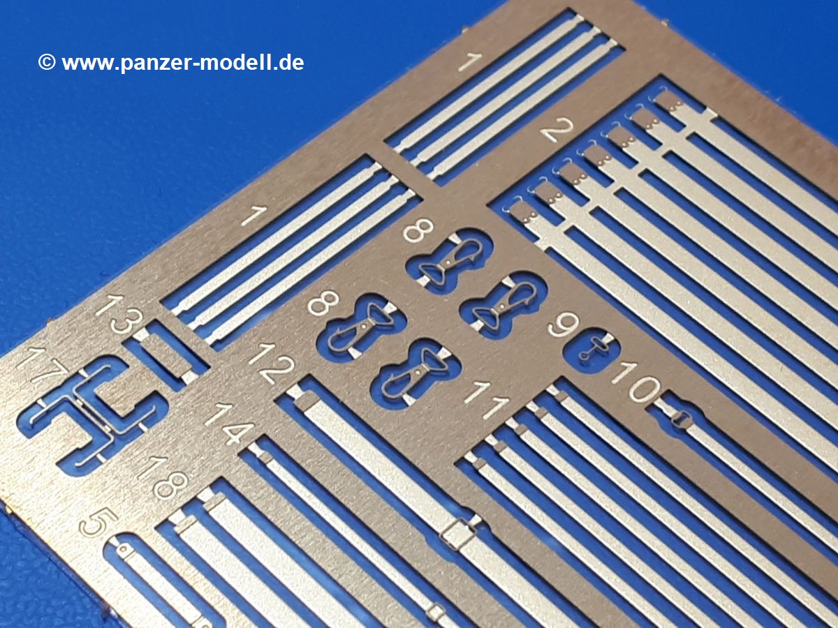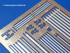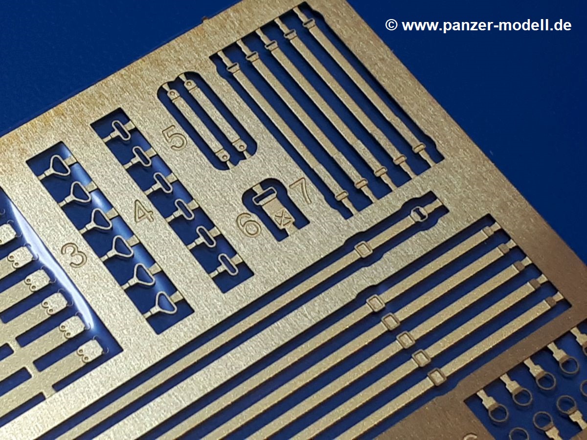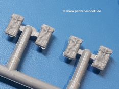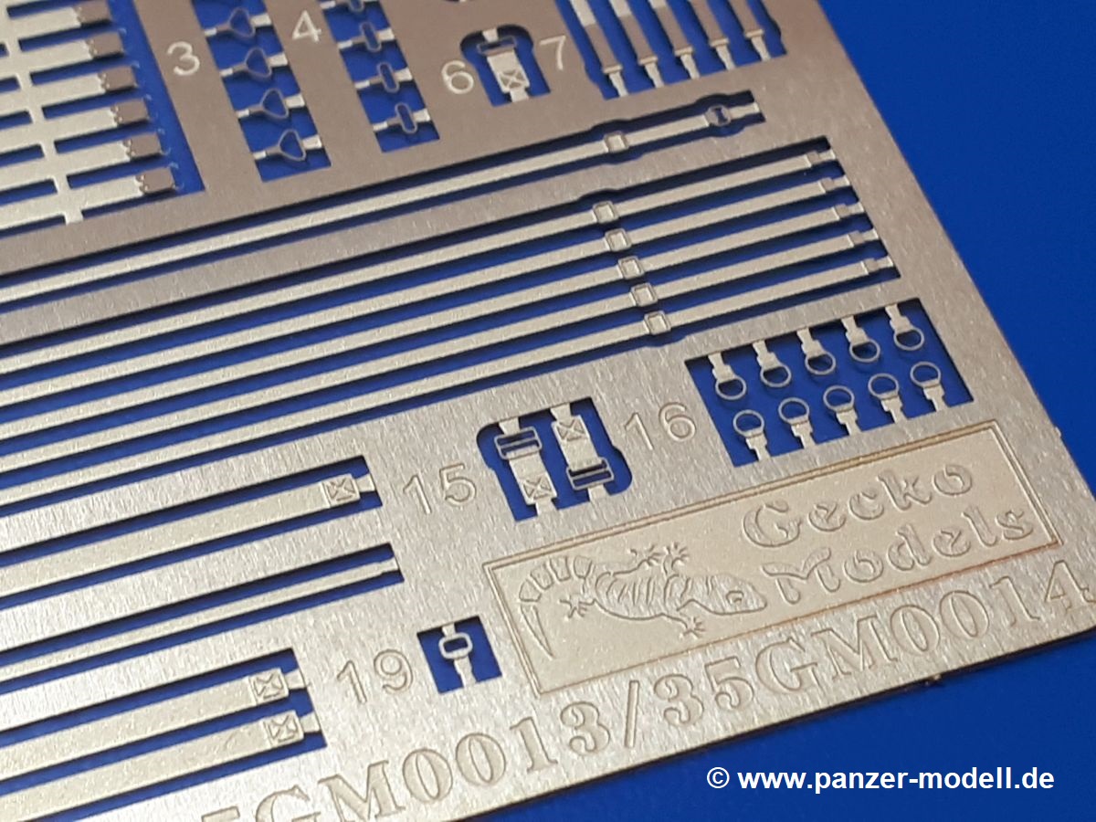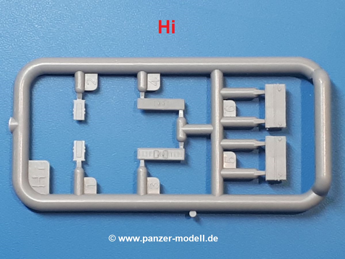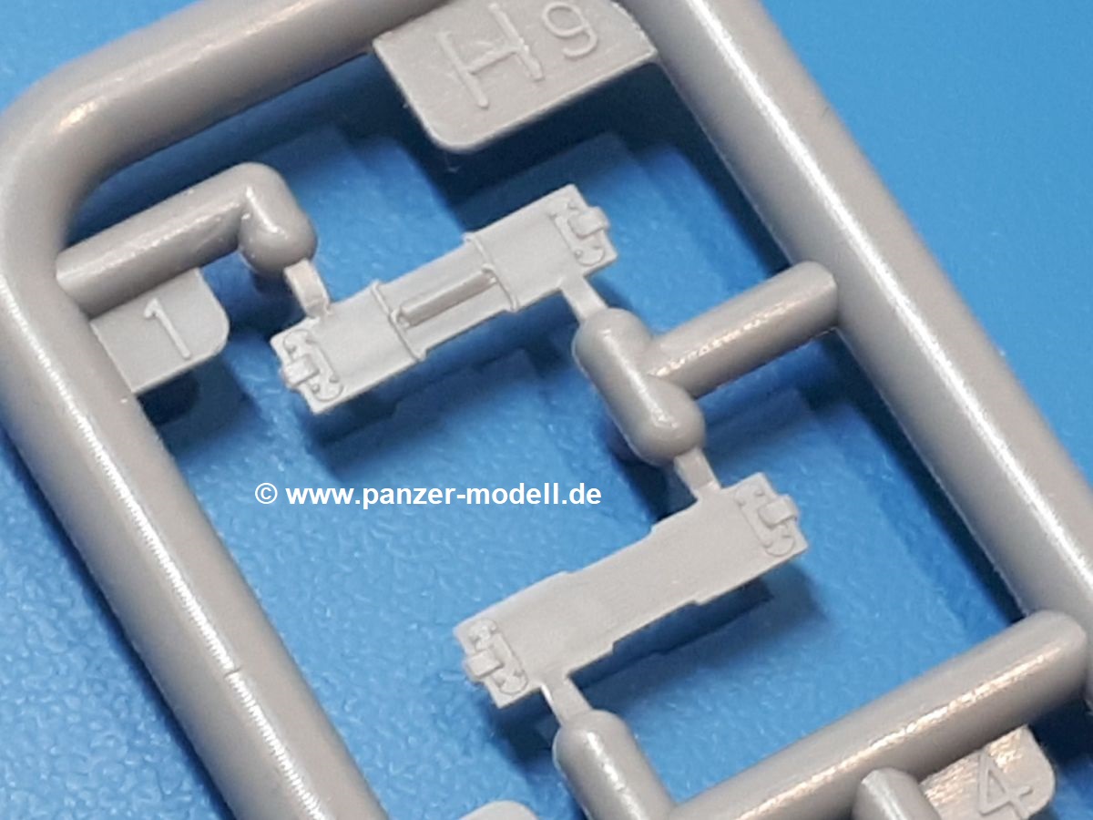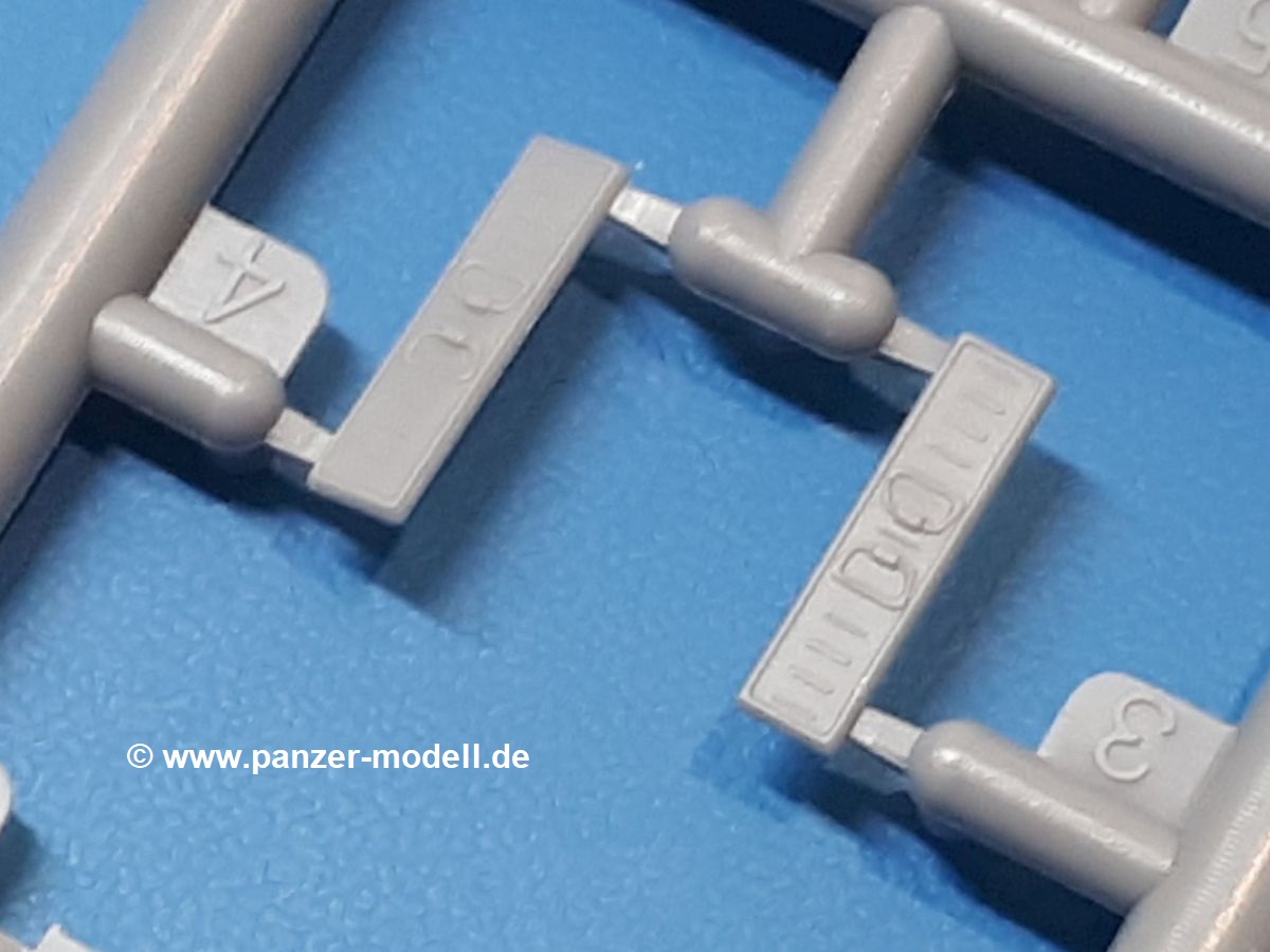 Die Teile sind sauber gespritzt, ohne Versatz und dicken Grat. Nur hier und da feiner Grat. Gesichter und Faltenwurf der Uniformen sind akzeptabel und für Spritzguss toll geworden. Viele Ausrüstungsgegenstände sind zur besseren Detaillierung mehrteilig ausgeführt, einige Details wie die Läufe der Waffen sind sehr filigran.Das Team besteht aus 5 Soldaten. Sie tragen Uniformen, wie sie im 2. Weltkrieg in Nord-Europa zum Einsatz kamen. Wer mitgezählt hat, konnte feststellen, dass es wesentlich mehr Arme als Soldaten gibt. Nein, das ist keine Spezialeinheit bestehend aus indischen Göttern, sondern Gecko Models ermöglicht für 4 der 5 Figuren je 2 Optionen.Dem Bausatz geschuldet ist der Mittelpunkt das Vickers-MG Kal. 0.303, das mit 2 verschiedenen Läufen gebaut werden kann. Die Laufmündungen sind natürlich bereits ausgehöhlt. Verschlussgehäuse, Handgriffe und Direktvisier sind separat vorhanden. Das dazugehörige, ausgeklappte Dreibein nimmt das MG-Lager mit Höhenstelleinrichtung auf und besteht aus insgesamt 6 Teilen. Ein Wasserkanister für die Kühlung, ein Gurtkasten und Munitionsgurt vervollständigen das Vickers. Anders als bei dem MG-Team im Einsatz werden die Teile auf die Soldaten aufgeteilt.Wer ist denn nun wer? Durch die vielen Optionen wird das nicht mehr so eindeutig. Beschreiben wir die Soldaten mal anhand der Spritzling-Nummern.Spritzling A: Option 1 stellt den, das ausgeklappte Dreibein auf den Schultern tragenden Soldaten dar. Seine Arme sind dabei lässig über die Beine des Gestells gelegt. Die Ärmel der Jacke sind hochgekrempelt. Auf dem Kopf trägt er den typischen Brodie-Helm (im deutschen auch Tellerhelm genannt). Vorn trägt er 2 große Magazintaschen, an der rechten Seite eine Feldflasche, an der linken 1 Ausrüstungstasche und hinten eine Tasche mit Grabwerkzeug. In der Option 2 trägt er das Bren-MG mit eingeklapptem Zweibein auf der linken Schulter, den Arm über den Lauf gelegt. Mit der rechten Hand hält er sich an einer Magazintasche fest. Helm und Ausrüstung wie in Option 1.Spritzling B: Auch hier gibt es 2 Optionen, aber in der Anleitung ist wohl etwas nicht ganz richtig, so dass ich bei der 2. Version etwas raten muss. Auf alle Fälle ist er derjenige, der das Vickers-MG trägt. Das MG liegt auf der rechten Schulter auf, die rechte Hand hält es am Bediengriff. Mit der linken Hand trägt er einen MG-Kasten. Seine Ausrüstung besteht natürlich aus dem Helm, dazu eine Feldflasche an der rechten Seite, 2 kleine Ausrüstungstaschen vorn am Koppel, eine große an der linken Seite. Dort finden wir auch einen Spaten, dessen Blatt an der linken Brust anliegt und der Stiel nach hinten links herausschaut. Auf dem Rücken trägt er einen Rucksack. Die 2. Option ist bis auf den rechten Arm gleich. Der rechte Arm hängt mit geöffneter Hand herunter. Ich rate mal, dass man ihm einen weiteren Gurtkasten oder einen Karabiner in die Hand geben könnte.Spritzling C: Der Munitionsträger ist der einzige ohne weitere Option. Er trägt in beiden Händen Munitionskästen und auf dem Rücken einen Munitionsrucksack. Vorn trägt er 2 große Magazintaschen, an der rechten Seite eine Feldflasche, an der linken 1 Ausrüstungstasche und hinten eine Tasche mit Grabwerkzeug. Selbstverständlich trägt auch er einen Brodie-Helm.Spritzling D: Ich möchte ihn mal den Sicherungsschützen nennen, denn er trägt entweder ein Bren-MG mit beiden Händen einsatzbereit vor dem Körper oder einen Karabiner in der rechten Hand. Seine Ausrüstung besteht in beiden Optionen aus Helm auf dem Kopf, Feldflasche an der rechten Seite, 2 großen Magazintaschen vorn, eine große Ausrüstungstasche an der linken Seite und einem Rucksack auf dem Rücken.Spritzling E: Hier haben wir, zumindest in der Version mit der Sten-MP, den Truppführer vor uns. Mit der rechten Hand hält er sich an einer Magazintasche fest, in der linken trägt er den Wasserkanister für die MG-Kühlung. Seine Ausrüstungsgegenstände sind Helm, 2 große Magazintaschen vorn, eine große Ausrüstungstasche an der linken Seite, ein Rucksack auf dem Rücken und die Tasche mit Grabwerkzeug. Vorn schräg über die Hüfte trägt er noch einen Gurt mehren Taschen. Alternativ trägt er dann als Truppführer die Sten-MP an der rechten Seite oder als Beobachter das Entfernungsmessgerät in seiner Schutztasche.Für die Stahlhelme, Taschen und Waffen gibt es Gurte aus PE-Material. Auch die Tragegriffe für den MG-Kasten und die Wasserkanister sind aus PE.Der Decalbogen hat Rangabzeichen vom Korporal bis zum Sergeanten anzubieten. Dazu kommen Beschriftungen für die Wasserkanister und Munitionskisten, MG-Schützenabzeichen und Einheitsabzeichen. Unter den Einheiten sind eindeutig zu erkennen die 11th Armoured Division (schwarzer Bulle in gelbem Feld), die 49th Infantry Brigade (Polarbär in schwarzem Feld) und die 53rd (Welsh) Infantry Division (rote Krone in braunem Feld).Die teils farbige Bauanleitung zeigt die gebauten Figuren mit den Nummern, wohin die Teile gehören. Die Bemalungshinweise sind pro Figur mittels Farbnamen angegeben. Anhand eines aufrecht gehenden Soldaten wird die Anbringung der Rang- und Einheitsabzeichen gezeigt. Der Zusammenbau von Munitionskisten, Wasserkanistern, Vickers-MG, Entfernungsmesser und Waffen erscheint in Extra-Bauschritten. Dies gilt auch für die Anbringung der PE-Gurte. Ein weiterer Schritt ist der Anbringung der Decals an Wasserkanistern und Munitionskisten gewidmet. Dort findet man auch die Farbangaben dazu, ebenso wie die Bemalung der Schaufel und der Tassen. Der letzte Schritt zeigt die Anbringung der PE-Gurte an Helm, Tasche und Fernglas-Etui sowie deren Bemalung.Nach dem MG-Team in Aktion ist dieser Satz auch hochwillkommen. Das Team befindet sich im aufrechten Gang beim Marsch fernab vom Feind. Aufgrund der vielen Figurenoptionen ist man mit 2-3 dieser Bausätze sicher gut bedient. Der Preis um die 16 EUR macht diese Figuren sicher noch attraktiver. Fans der britischen Armee ran an den S