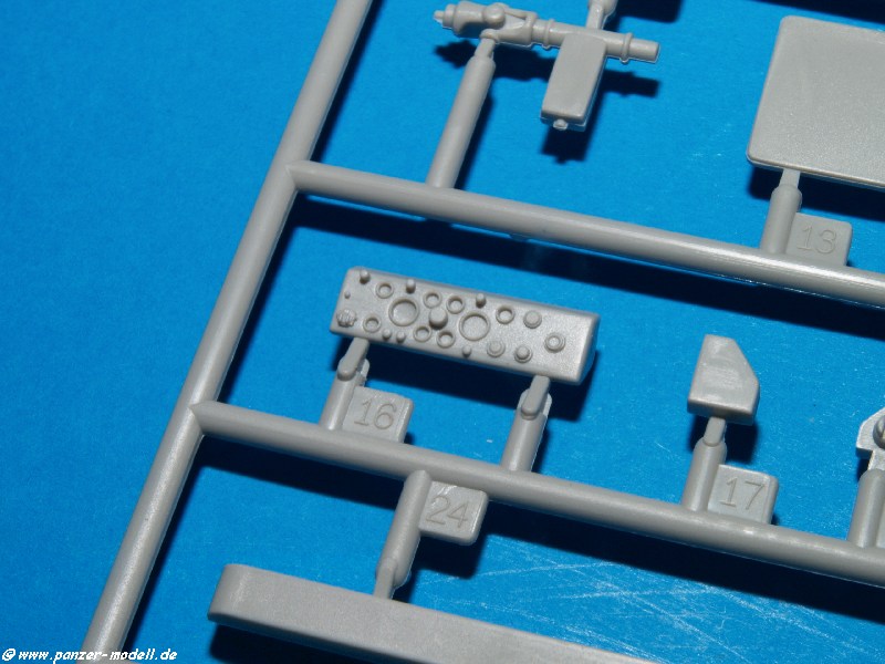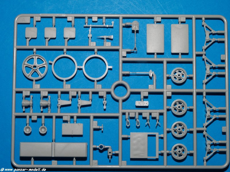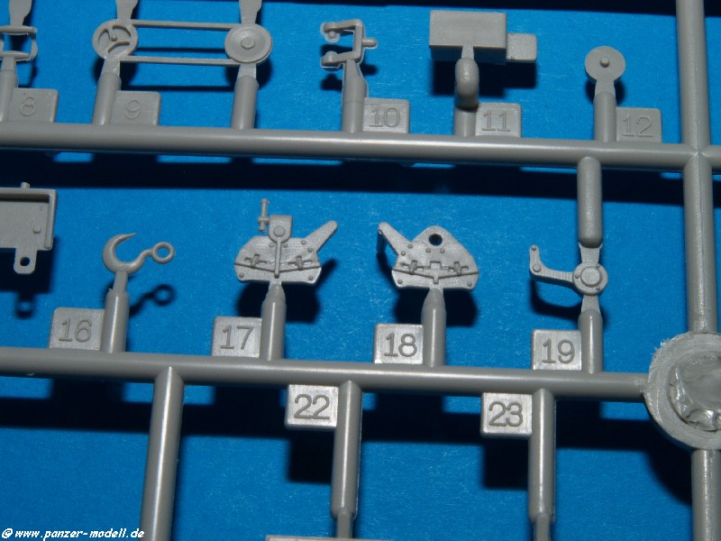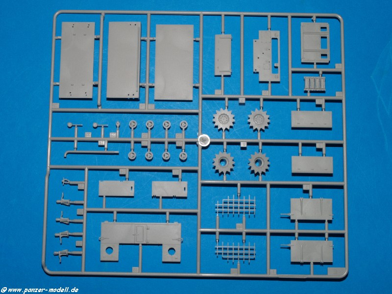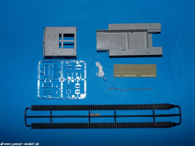 Vermisst habe ich jedoch ein Zugmaul für den M4. Hier muss man andere Bausätze ausschlachten, wenn man den M4 z.B. im Gespann mit einer 155mm Kanone 'Long Tom' oder der 8inch Haubitze darstellen will. Für mich ein Punkt, der ein wenig unverständlich ist. Desweiteren liegt dem Bausatz (im Gegensatz zum Deckelbild) keine Abdeckplane für die obere Ladefläche bei. Hier darf man sich beim Bau richtig austoben.