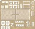 Im Bausatz finden sich nun gut 230 Teile verteilt auf 5 Spritzlinge, Kabine und Wanne aus hellgrauem Plastik, sowie ein Spritzling für die Klarischtteile. Desweiteren gibt es ganz nett gemachte Vinylketten vom Typ T49, eine größere Platine mit Ätzteilen wie Gitter für den Motorraum, Abdeckungen für die Scheinwerfer, Wischerblätter(!), usw., ein Decalbogen für zwei Fahrzeuge, ein Kunststoffseil für die Winde, sowie eine kleine Kette. Klasse finde ich die Beigabe einer Spritzschablone, welche schon passend für die Scheiben zurechtgeschnitten ist. Einfach den passenden Aufkleber abziehen, auf die Scheibe kleben; fertig. Simpler geht es nicht mehr.