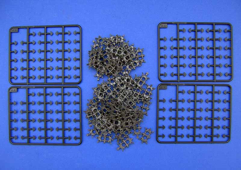 Die Einzelgliederkette mit separat zu verklebenden Gummipolstern ist ein weiteres positives Feature. Da das Laufwerk am fertigen Modell zum Großteil sichtbar ist trägt sie erheblich zum Erscheinungsbild bei.