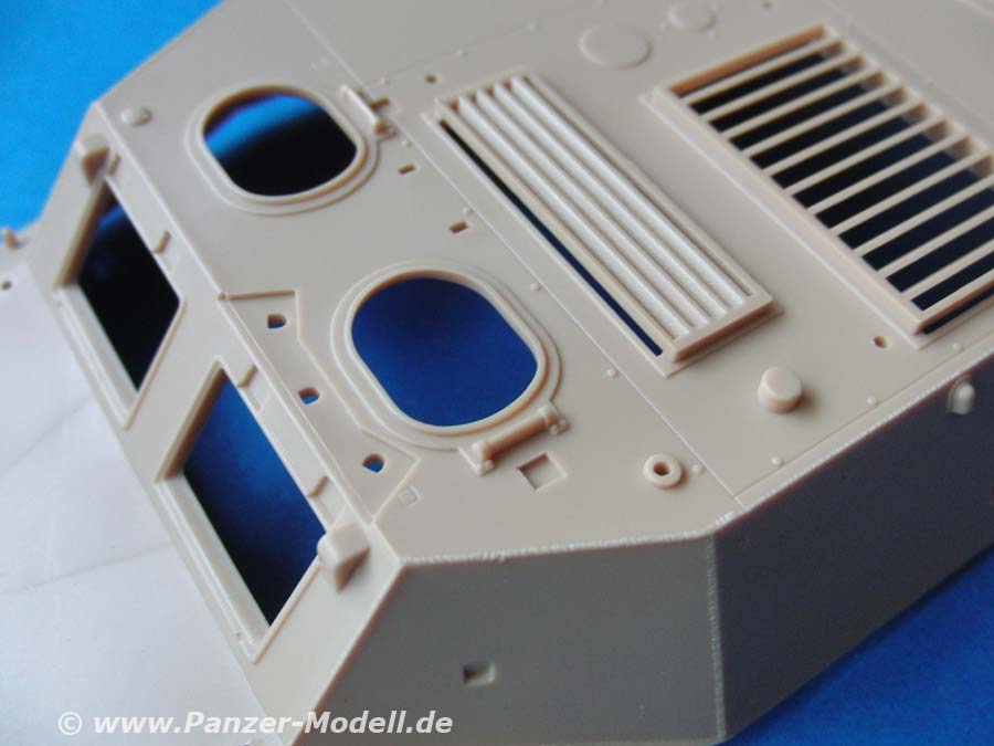 Die Lüfteröffnungen sind mit offenen Rippen dargestellt sowie allen Luken offen darstellbar. Eine Inneneinrichtung ist allerdings nicht enthalten.