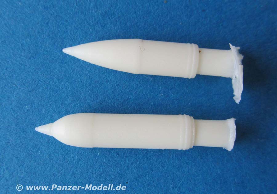 Alle diese Teile sind sehr gut und fein detailliert gegossen. Besonders beeindruckt hat mich das einteilig und hohl gegossene Rohr der 15cm sIG mit Feldern und Zügen. Darüberhinaus liegen ein ganzer Haufen an Granaten in zwei verschiedenen Typen in Resinguss bei.