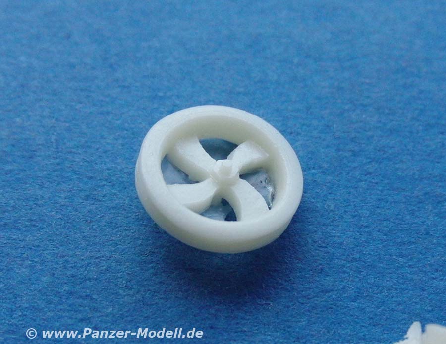 Desweiteren ist der koplette obere Aufbau als Resinteile vorhanden, um den offenen Kampfraum zu realisieren - dafür sind die seitenteile, Bugplatte und Motorraumplatte als Resinteil enthalten.