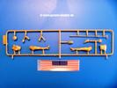 In dem 250 x 175 x 35 mm großen Karton befindet sich ein hellgrauer Spritzling mit insgesamt 11 Teilen. Da hätten wir 2 Arme, 2 Beine, Oberkörper Rücken, Oberkörper Brust, Kopf, 2 Haarteile, Mütze und eine Fahnenstange. Dazu kommt die US-amerikanische Flagge mit 50 Sternen, wie es sie seit dem 4. Juli 1960 gibt.