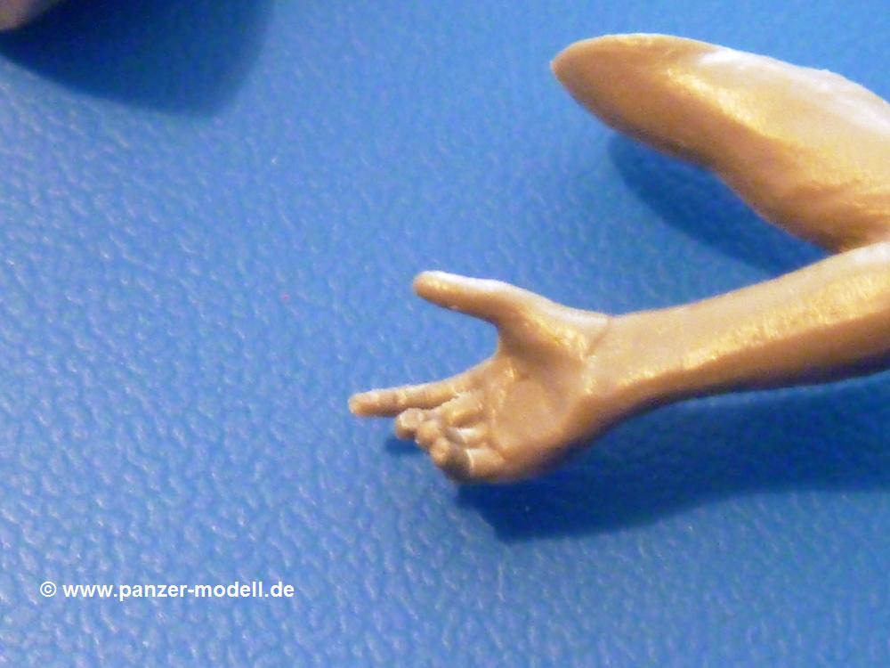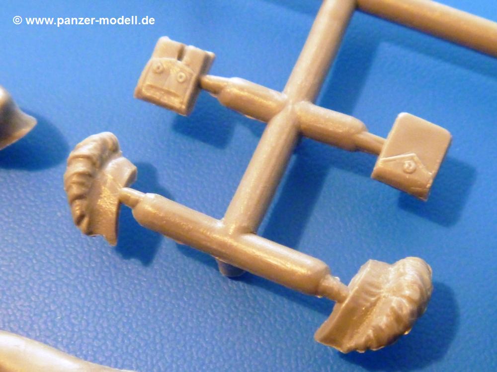 Details wie die Koppelnieten, Gurtschlösser, Gesicht und Hände kommen gut zur Geltung. Der Zusammenbau sollte keine Probleme darstellen. Da es sich um Spritzguss handelt, kommt man mit handelsüblichem Plastikkleber gut zurecht.