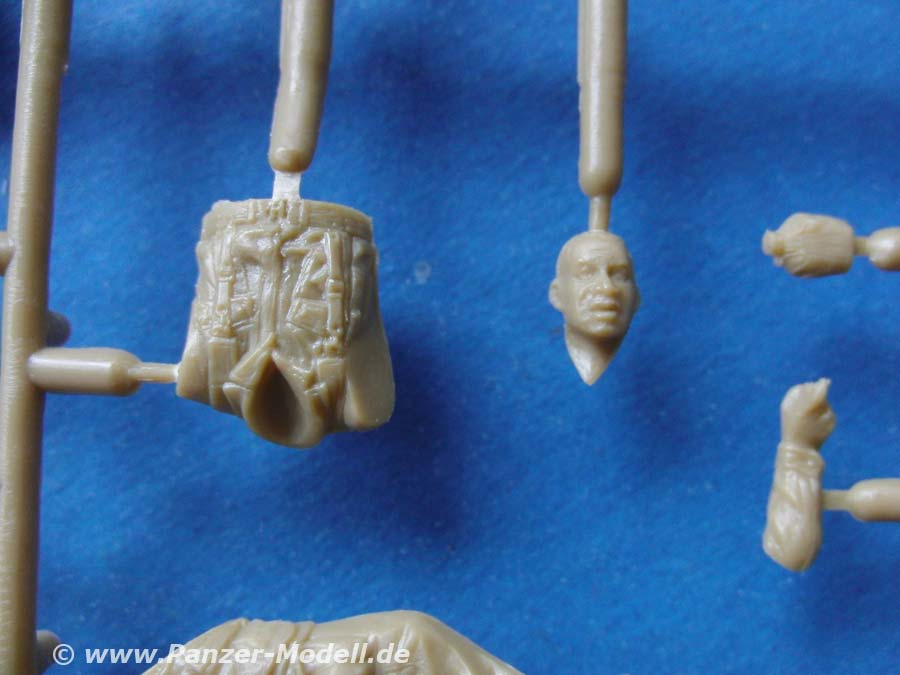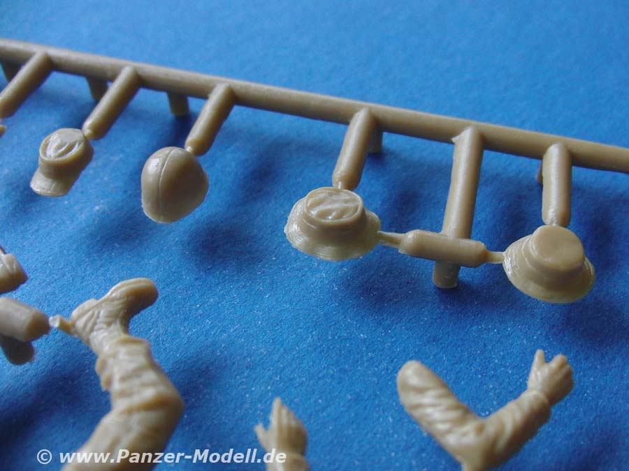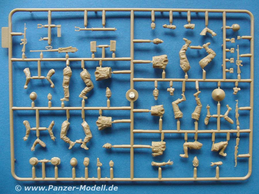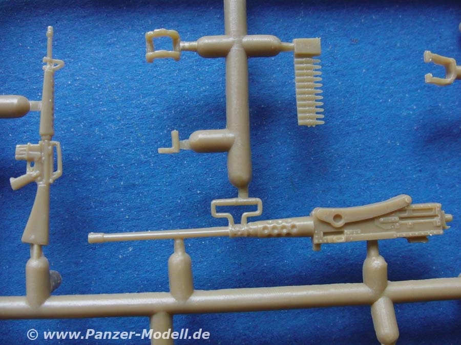Für den Jeepfahrer stehen 2 verschiedene Köpfe und 2 verschiedene linke Arme zur Verfügung. Die übrigen Figuren weisen tolle und gute Gestaltung der Uniform auf und die Posen sind sehr gut gewählt. Der Browning Bediener leicht gebückt, der Afroamerikaner mit dem M16 im Anschlag und der Jeepfahrer hinterm Steuer sitzend in Aktion.