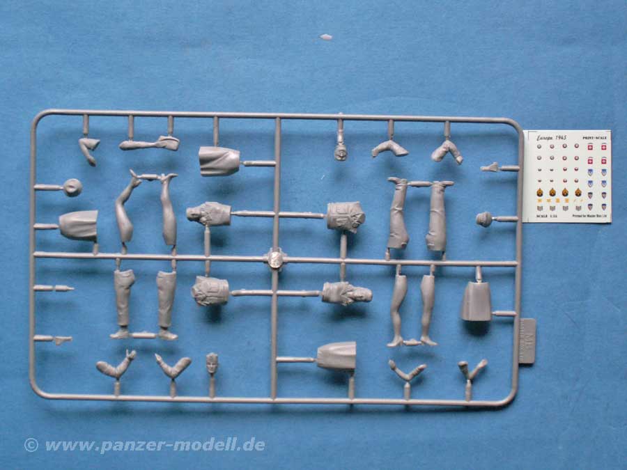 Zusätzlich gibt es einen Decalbogen für die Uniformen der beiden Soldaten und eine Flasche, die allerdings leider nicht durchsichtig ist.