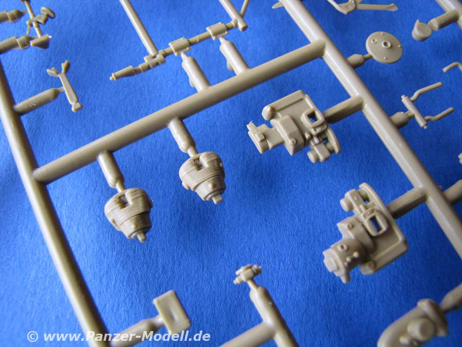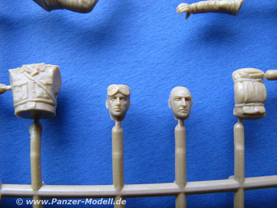 Die Figuren sind je einmal Fahrer und Beifahrer einmal in Sommeruniform und einmal dick eingepackt in Winteruniform. Entsprechend sind auch Zubehörteile für dei Figuren enthalten.