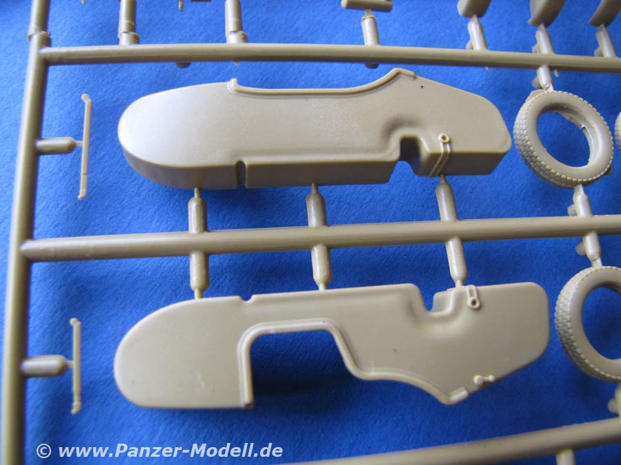Ein Spritzling enthält das Motorrad mit Beiwagen und der andere Spritzling vier entsprechend passende Figuren.