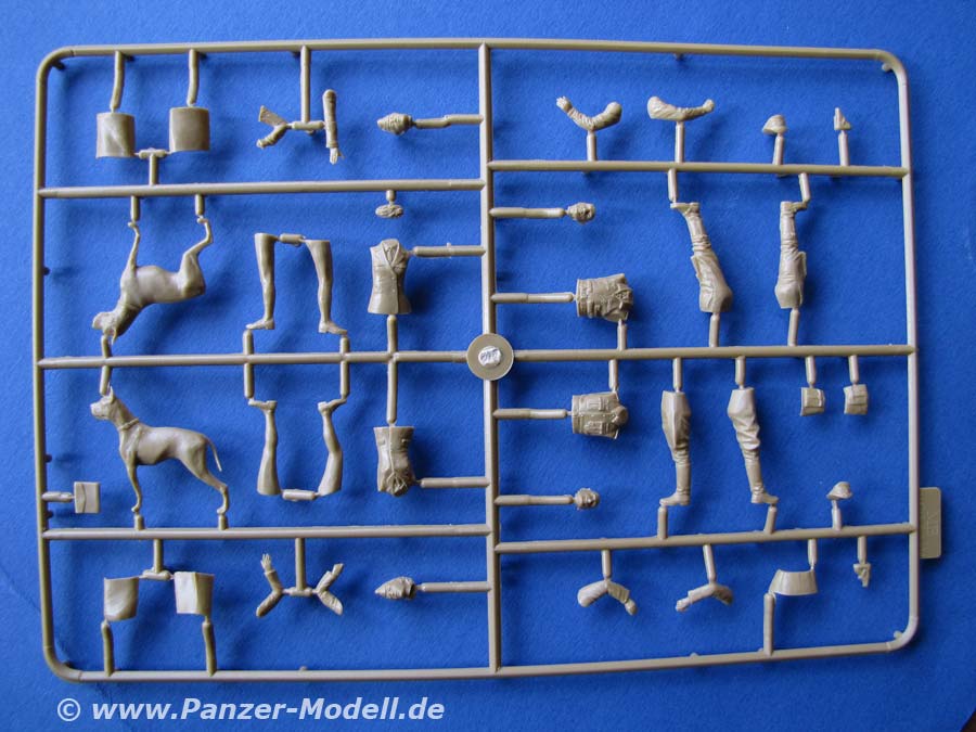 Enthalten ist ein Spritzling für 4 Figuren und einen Hund.