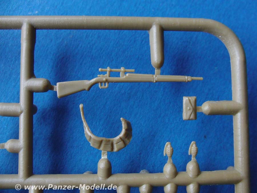 Natürlich gibt es die passenden Handwaffen und persönliche Ausrüstung für die Soldaten in ebenso guter und vor allem detaillierter Qualität in Plastik.