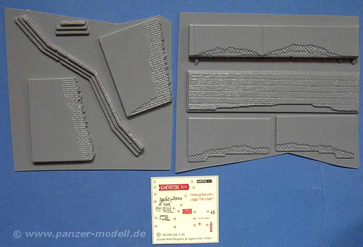 Ausserdem ist ein Bogen an Decals enthalten mit Wandschmierereien, Slogans und dergleichen. In der vierseitigen Bauanleitung wird auch dargestellt welches Decal zu welcher Zeit in welchen Städten sinnvoll ist! Insgesamt macht die Bauanleitung einen guten und soliden Eindruck und zusammen mit den guten Bauteilen lässt sich hier eine Bereicherung für eine Stadtszene irgendwo in Russland bauen!