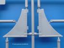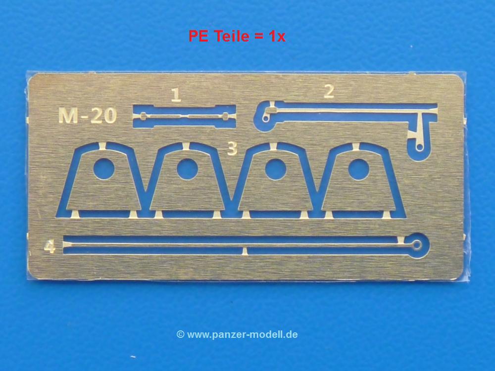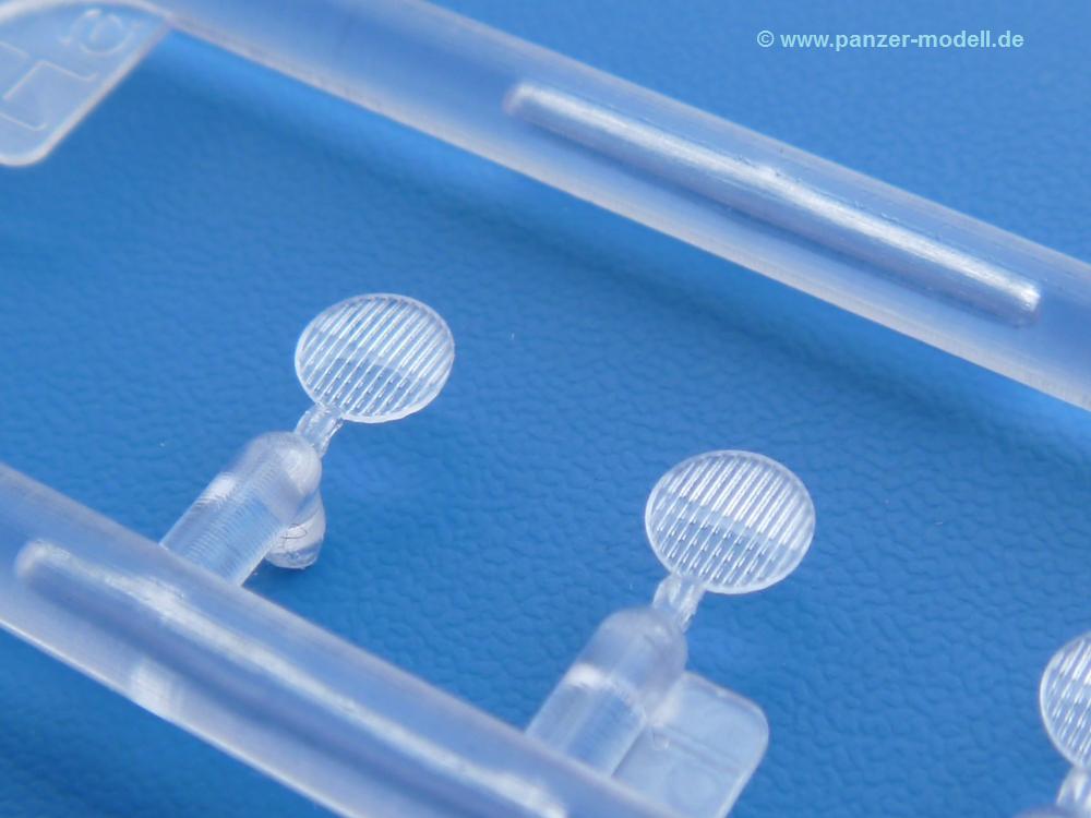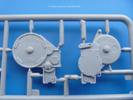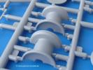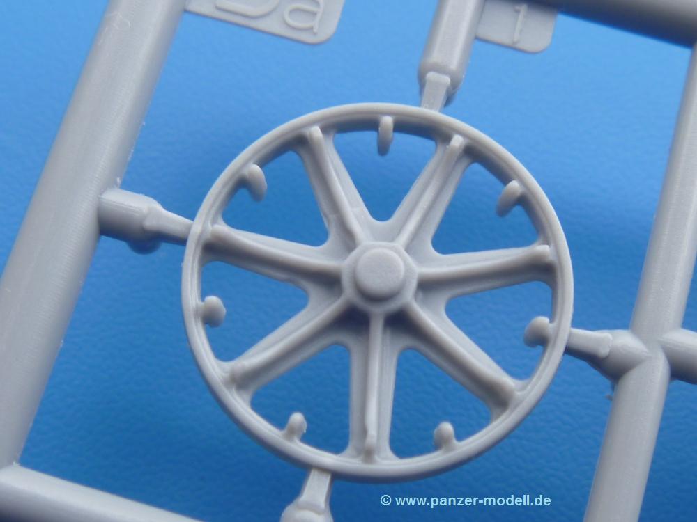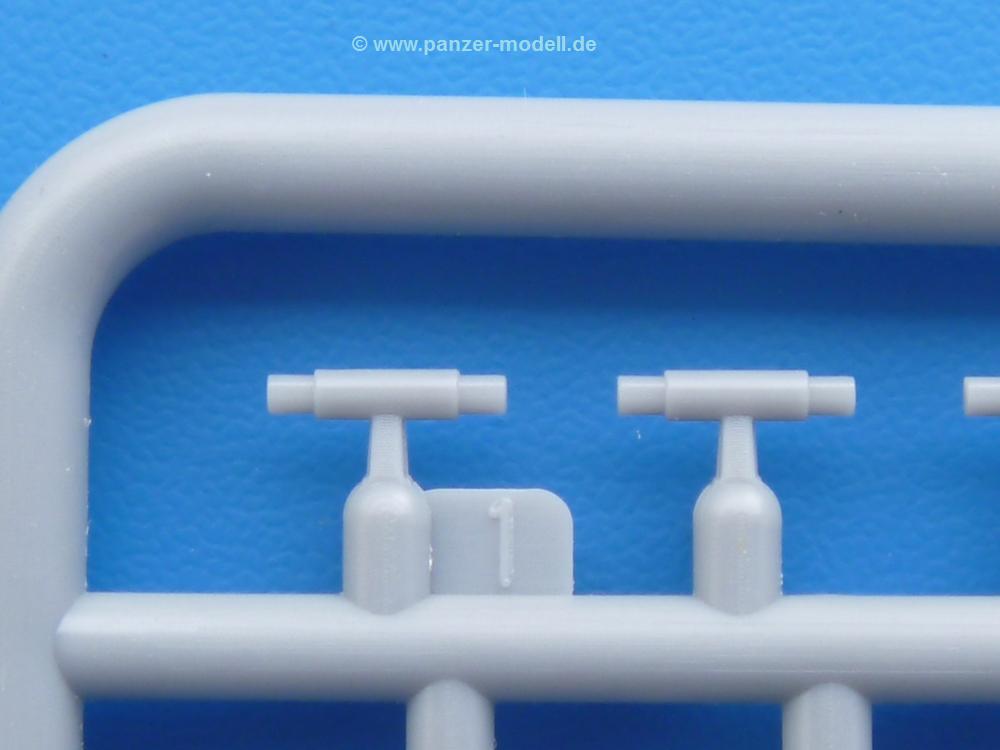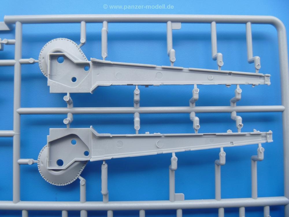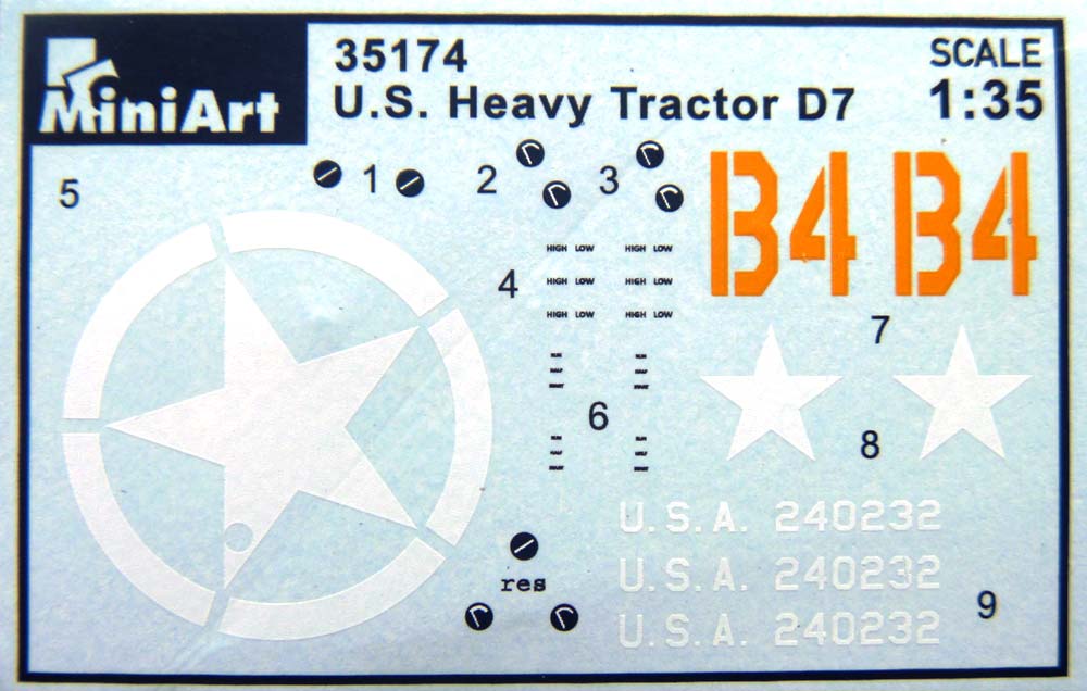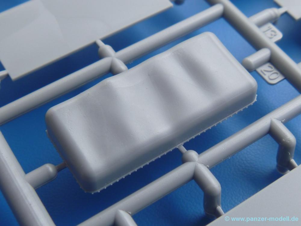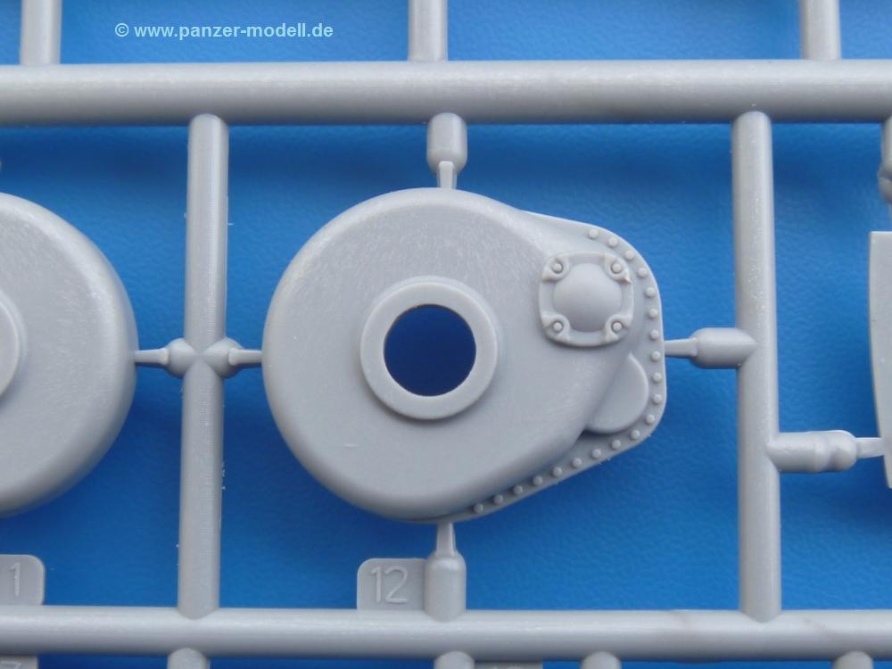 Die Teile aus hellgrauem Plastik sind sauber gespritzt, ohne Verzug und Versatz, hier und da minimaler Grat, keine Fischhäute, 1-2 minimale Sinkstellen. Auswerferspuren sind nur auf Innenseiten von Teilen vorhanden, so dass sie beim Zusammenbau verschwinden, ohn das man sie wegschleifen und verspachteln müsste.Schaut man sich Bauteile und Bauanleitung an, sieht man gleich, dass es sich bei dem D7 nur um einen Motor mit Kettenlaufwerk handelt. Fahrerraum, Verkleidungen und sonstigen Firlefanz gibt es nicht.Das Herzstück bilden die beiden Motoren. Schon der kleinere 2-Zylinder Benzinmotor macht ordentlich etwas her. Man kann sich an Details wie Bedienhebeln, Verschraubungen, Zündkerzen und erhabenen Gussnummern erfreuen. Interessantes Detail - der kleine Auspuffkrümmer mündet in den großen des Dieselmotors. Auch das Gestänge für die Anwurfkurbel auf der Motorhaube wurde nicht vergessen. Schon beim Motorenbau kommen die ersten Decals (Bedienhinwese) zum Einsatz.Auf dem Motorblock des Dieselmotors prangt in erhabenen Buchstaben der Caterpillar Schriftzug (MiniArt hat sich wohl die Markenrechte gesichert.). Zylinderkopfdeckel, Einspritzpumpe und separate -düsen, Keilriemen und -scheiben, Lüfterrad, Bedienhebel, Schläuche usw., usw. Man hat den Eindruck, dass kein Teil vergessen wurde. Der kleine Tank für den Benzinmotor findet seinen Platz an der Stirnseite des Dieselmotors. Der Ölmessstab der Ölwanne wird separat angebracht. Details über Details. Einige wenige PE Teile (3!) werden für feine Gestänge gebraucht. Technikbegeisterte werden voll auf ihre Kosten kommen.Der riesengroße Kühler besteht aus 3 Bauteilen mit sehr feinen Kühlrippen. Der Ablassschlauch am unteren Ende war beim Besprechungsmuster etwas verbogen, ist aber kein Beinbruch und lässt sich richten.Am großen Kupplungsgehäuse sitzt das Getriebe, das in den großen Getriebekasten mit den Seitenabtrieben mündet. Am Getriebkasten sitzen auch die Längsträger. Auf deren Innenseiten sind einige Auswerfermarken zu finden, aber wie gesagt - auf den Innenseiten. Auch sitzen die Anschlüße der Laufrollenwagen am Getriebkasten. Diese werden ohne Kleben eingesetzt, d.h. man kann den D7 das Beinchen heben lassen wie beim Original, wenn die große Blattfeder nicht zu störisch sein wird. Dioramenbauer werden dies begrüßen.Es wird spannend werden, die vielen Hebel, Gestänge und Pedale in die richtige Position zu bringen. Einiges wird dabei unter den fein geriffelten Bodenblechen wieder verschwinden, aber sehen wir dies mit asiatischer Philosophie - "Der Weg ist das Ziel!".Der große Luftfilter befindet sich vor den Füßen des Fahrers. Der zylindrische Körper ist aus einem Stück gefertigt, also keine Naht, wo keine Naht sein sollte. Die Flügelmuttern zum Verschluß gibt es als Einzelteile.Am Heck des Traktors wird eine D7N Hyster Seilwinde befestigt. Auch hier erhabene Buchstaben auf den Gussteilen. Sämtliche Bedienhebel vom Fahrer zur Winde sind vorhanden. Leider gibt es kein Windenseil. Man muss sich ggfs. mit Bindfaden oder anderen Materialien selbst helfen.Das Rückenteil des Fahrersitzes bildet der Tank für den Dieselmotor. Das Sitzpolster ist schön geformt mit leichten Wellen, wo der Fahrer sitzt.Die Laufrollenwagen werden aus mehreren Längs- und Querträgern zusammengesetzt. Jedes Laufrollenpaar besteht aus 4, bzw. 6 Teilen und wird drehbar bleiben. Gleiches gilt für Antriebs- und Leiträder. Nur die Stützrollen werden fest verklebt. Der Federmechanismus für die Leiträder besteht aus Innen- und Außenfedern, die sehr schön (aus Plastik) geformt sind, dass es schon wieder ein Schande ist, die Abdeckungen überhaupt zu montieren. Die Einstellspindeln für die Leiträder erhalten trapezförmige Lager aus PE Teilen. Dazu müssen die Spindeln angeschnitten und nach Montage der PE Teile wieder verklebt werden.Die einzigen Befestigungspunkte der Laufrollenwagen stellen zum einen die Gehäuse der Antriebsräder, die Auflage der Blattfeder und die dicken, bügelförmigen Halterungen dar. Letztgenannte Halterungen weisen flache Sinkstellen auf, die man aber ignorieren kann, wenn man den D7 auf seine Ketten stellt und nicht umgeworfen darstellen will.Der markante Kühlergrill gibt dem Traktor sein Gesicht. Dort schließen links und rechts Seitenbleche mit Caterpillar Aufdruck und den Hauptscheinwerfern an. Die Bleche decken aber nichts vom Motor ab. Man sieht auch nach der Endmontage zu ziemlich alles. Daran ändert auch die Motorhaube nichts. Die Scheinwerfer sind innen hohl mit angedeuteter Glühbirne und glasklaren Scheinwerfergläsern mit schöner Riffelung im Glas. Nach Montage der Haube setzt man nur noch das Aufpuffendstück und die Anlasserkurbel für den Benzinmotor auf. Bevor man die seitlichen Trittbleche montiert, sollte die Kette erst aufgezogen werden. Pro Seite nur 36 Kettenglieder, aber jedes Glied besteht aus 1 Bolzen, 2 Seitenführungen und 1 Auflage. Die Bauanleitung verspricht volle Beweglichkeit. Man muss nur vorsichtig mit dem Klebstoff umgehen.Die Abziehbilder (Decals) enthalten Bedienungsanweisungen, vereinfachte Instrumentenanzeigen, sowie Markierungen für ein Fahrzeug der US Armee im Einsatz in Frankreich, 1944. Für die zivile Ausführung in gelb braucht man nur die Bedienungsanweisungen und Instrumentenanzeigen.Die in Englisch und Russisch gehaltene 12-seitige Bauanleitung beginnt mit 2 farbigen Bemalungsanleitungen mit Decalplatzierung, gefolgt von der Teileübersicht auf Seite 2. Dann folgen 66 Bauschritte mit Explosionszeichnungen, sinnvoll und logisch aufgeteilt und aus meiner Sicht leicht verständlich. In den Bauschritten finden sich immer wieder Hinweise zu Teilbemalungen.Farbnummern werden für folgende Hersteller angegeben:- Vallejo