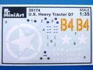 Das Original: Der Caterpillar RD7 (ab 1937 nur noch D7) war ein Vollkettentraktor, der seit 1935 seine Dienste verrichtet und heute noch in modernisierter Form zu finden ist. Er ist ursprünglich mit einem 93 PS 4-Zylinder Dieselmotor ausgerüstet, der von einem 24 PS 2-Zylinder Benzinmotor gestartet wird. Seine eigentliche Aufgabe als Zugmaschine sowohl im zivilen als auch militärischen Bereich wurde mit Hilfe von Anbauteilen wie Winde oder Räumschaufel erweitert. Der Bausatz: MiniArt hat es geschafft, seinen D7 vor Mitbewerbern auf den Markt zu bringen. Wir konnten auf der Spielwarenmesse 2015 in Nürnberg bereits ein gebautes Exemplar bewundern, so dass es einen verwundert, wie gut gefüllt der 385 x 242 x 70 mm große Stülpkarton ist, obwohl das gebaute Modell vergleichsweise klein ist. 19 hellgraue und 1 glasklarer Spritzling bilden den Inhalt. Dazu komme eine kleine PE Platine, ein Decalbogen und die 12-seitige Bauanleitung im Format A4.Der Inhalt ist wie folgt aufgeteilt: