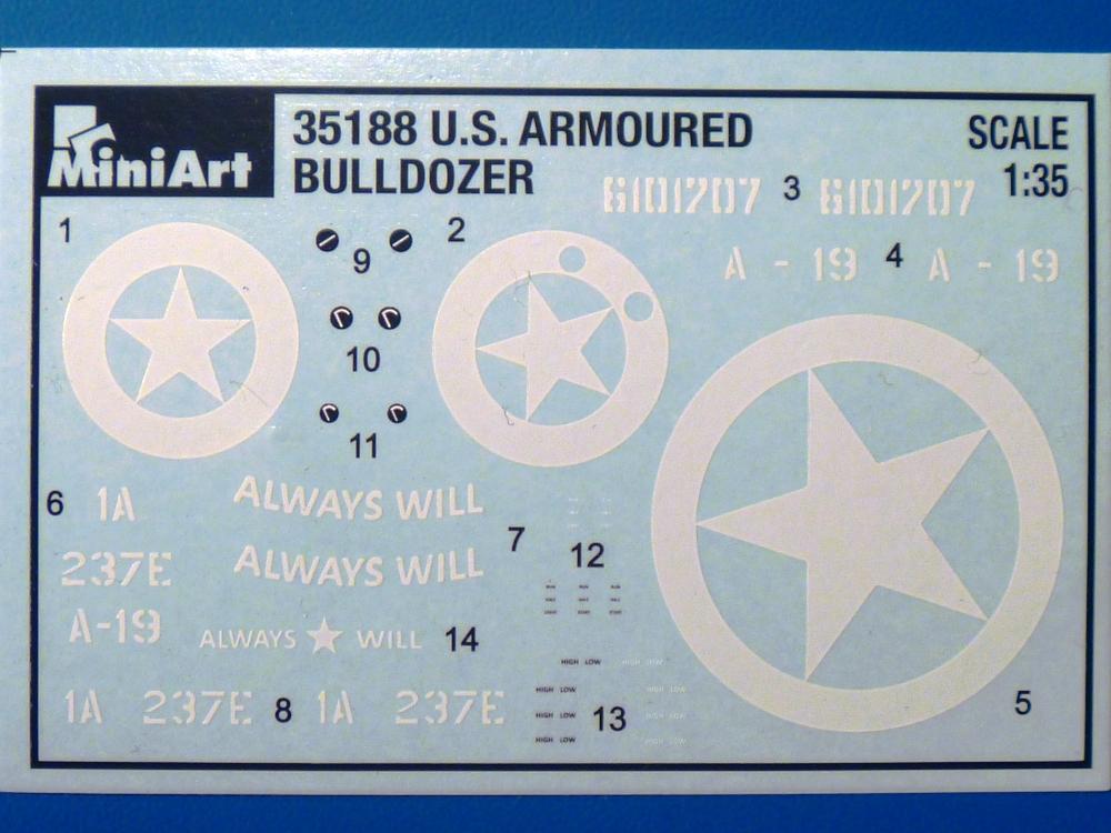 Das Original: Der Caterpillar RD7 (ab 1937 nur noch D7) war ein Vollkettentraktor, der seit 1935 seine Dienste verrichtet und heute noch in modernisierter Form zu finden ist. Er ist ursprünglich mit einem 93 PS 4-Zylinder Dieselmotor ausgerüstet, der von einem 24 PS 2-Zylinder Benzinmotor gestartet wird. Seine eigentliche Aufgabe als Zugmaschine sowohl im zivilen als auch militärischen Bereich wurde mit Hilfe von Anbauteilen wie Winde oder Räumschild erweitert. Es gab verschiedene Arten von Räumschilden, wie auch unterschiedliche Ansteuerung über Seilwinde oder Hydraulik. Im militärischen Fronteinsatz wurden D7 zum Schutz der Besatzung mit Teil- oder Vollpanzerung ausgerüstet. Der Bausatz: Vor uns liegt der mittlerweile 4. Bausatz eines D7 von MiniArt. Diesmal mit hydraulisch betätigtem Räumschild, wie wir ihn schon aus dem MiniArt Bausatz Nr. 35195 kennen, und einer Teilpanzerung für den Fahrerplatz in Form eines Standardaufsatzes aus Stahlplatten. Der 385 x 240 x 80 mm große Stülpkarton ist mit 30 Spritzlingen, 1 kleinen PE-Platine, 1 Decalbogen und einer 20-seitigen Bauanleitung gut gefüllt. Für das fetrige Modell darf man 767 Teile zusammensetzen.Der Inhalt: