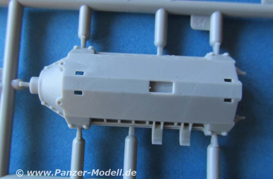 Das Kanonenrohr ist aus Plastik und einteilig was schon mal sehr vorbildlich ist.