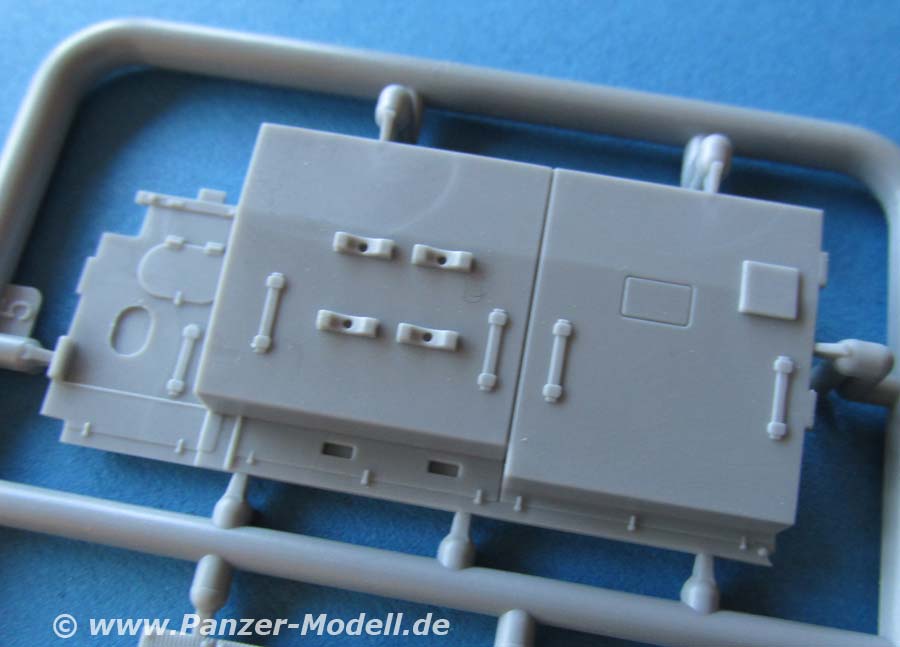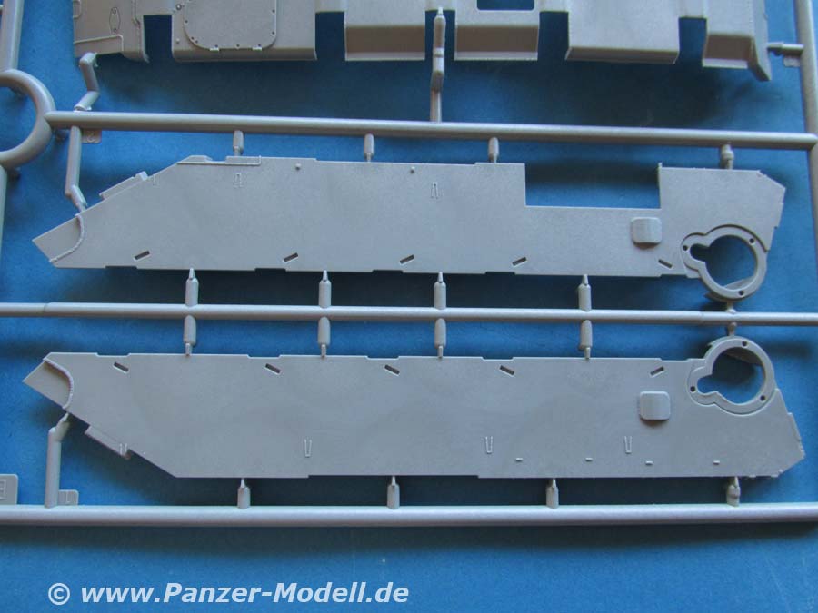 Die Kettenbleche setzen sich ebenfalls aus mehreren Teilen zusammen und werden mit relativ vielen detaillierten Kleinteilen versehen.